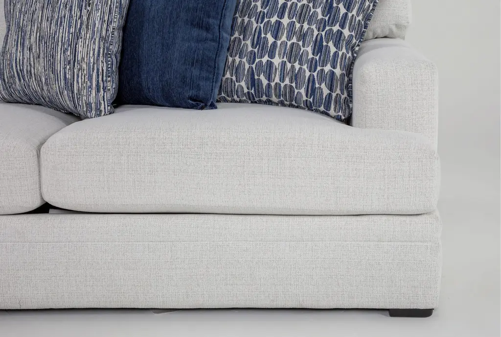 Designed and made exclusively by Living Spaces with comfort, style and practicality in mind, our Anacapa sectional checks all the boxes. Modular in nature, you'll find small and large configurations to fit your space perfectly. Deep and plush seating is hard to resist, while accent pillows add all that jazz and pizzazz with a timeless blue palette you'll love. Best of all, the high-performance, solution-dyed polyester cover is durable, bleach cleanable and fade resistant.