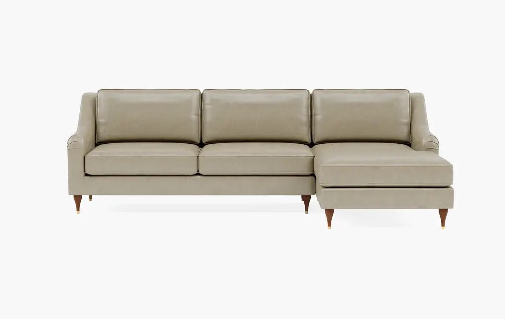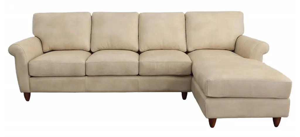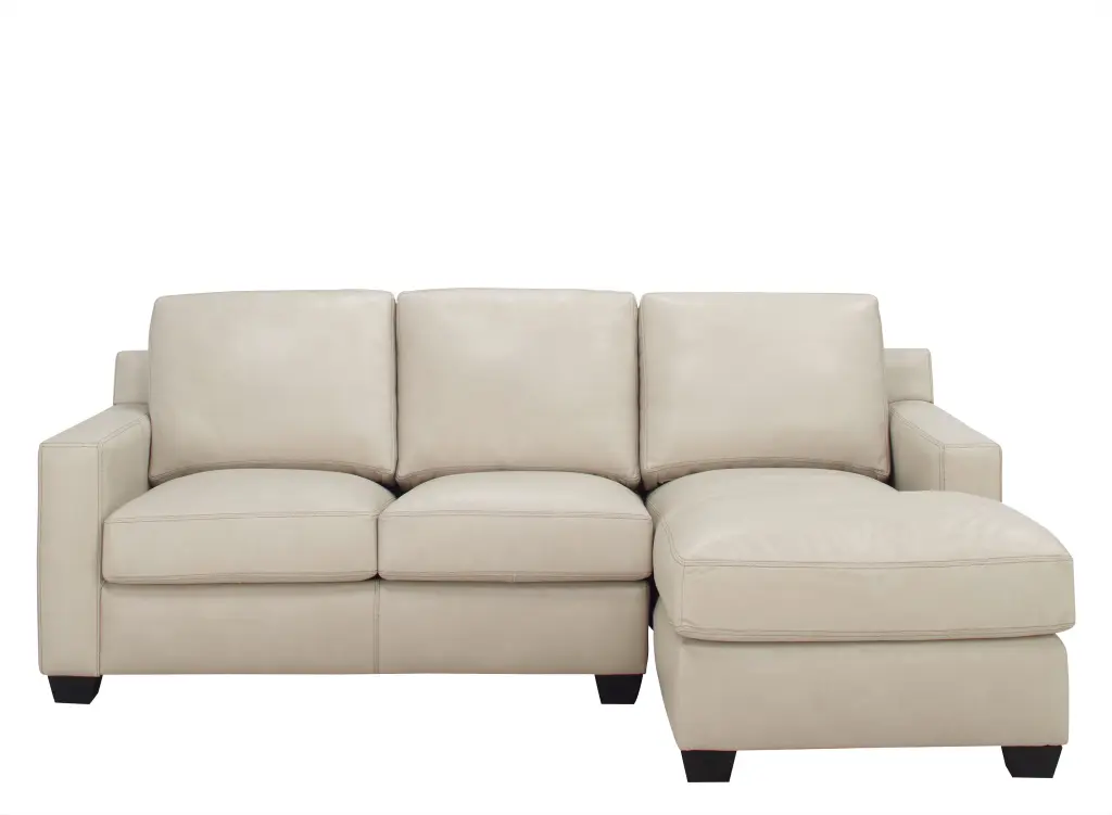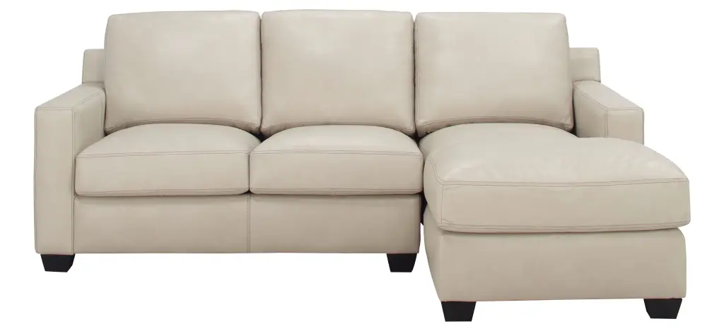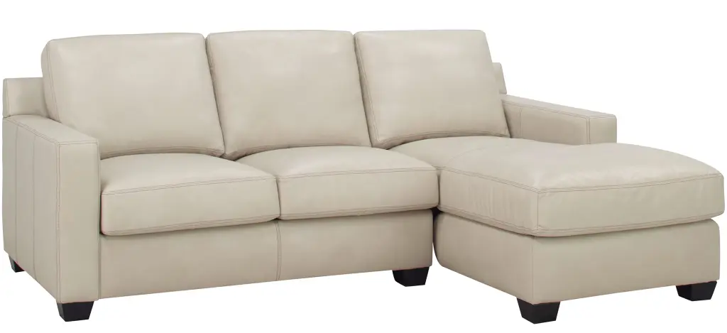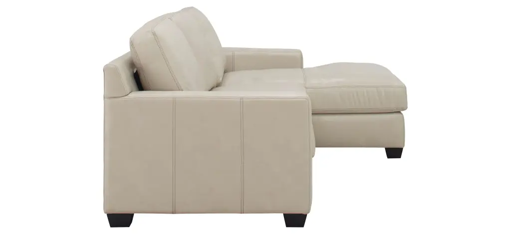 For a clean, contemporary living room with plenty of comfort, look to the Anaheim 2-piece leather sectional. This piece features stylish top-grain leather seating that's smooth to the touch, trendy track arms and plush stuffed back cushions for ultimate comfort.