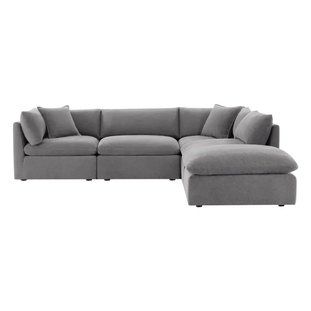 Host more game nights and movie marathons with our corner sectional set. Modular sections and an ottoman feature wooden frames wrapped in linen in a muted tone that goes with just about any color palette. Foam- and feather-blend cushions along with sinuous springs give you just the right amount of support, while the included accent pillows introduce another layer of comfort.