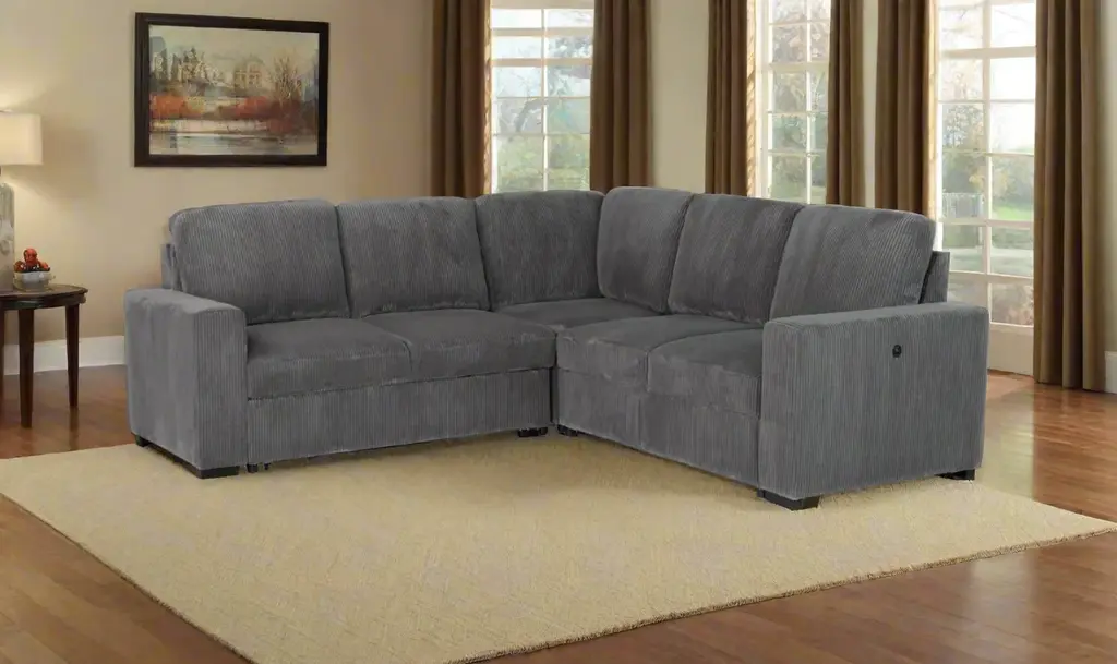 Araceli Ii Pewter Grey Black Fabric Modular 109" 3 Piece L-Shaped Sectional | Symmetrical | Loose Reversible Back