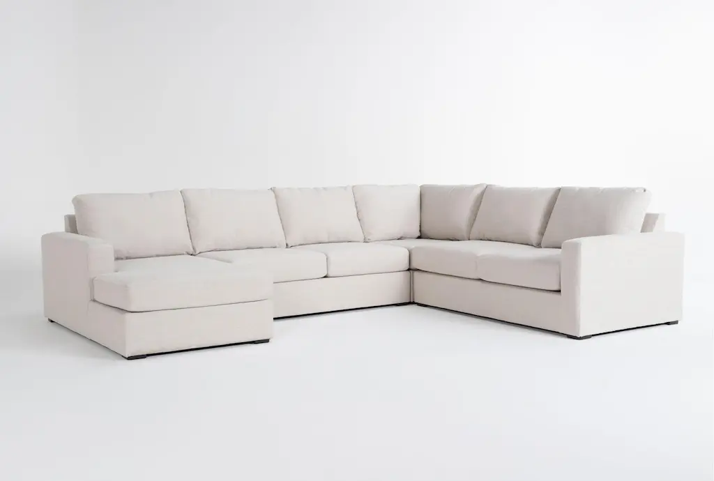 Araceli Ii Sand Beige White Fabric Modular 140" 4 Piece U-Shaped Sectional With Left Arm Facing Chaise