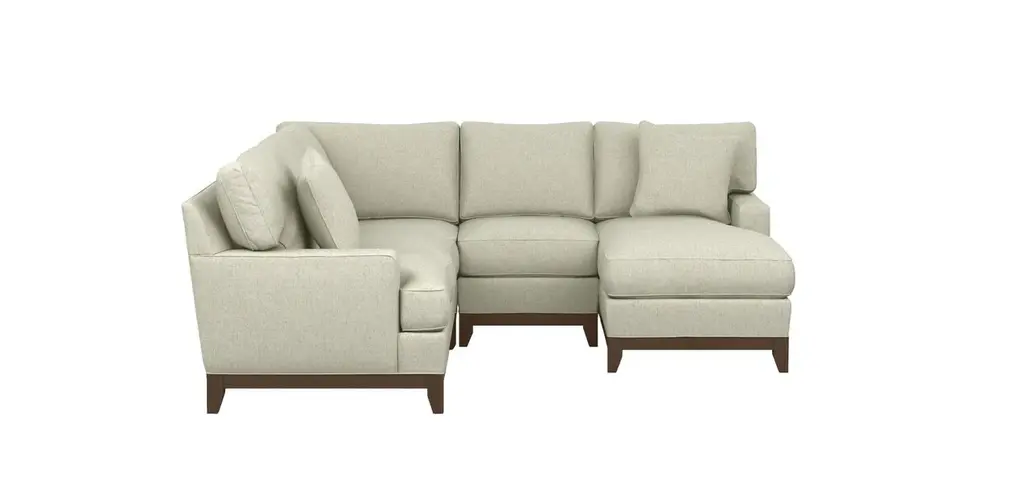 Comfort abounds in this perfectly scaled, contemporary seating collection. A signature wood base with tapered legs anchors loose back and seat cushions and track arms, making it well suited for both casual and formal spaces.