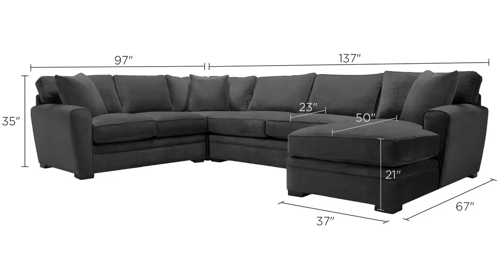 This Artemis II 4-pc. microfiber sectional sofa is so easy to decorate with. Its graphite color works with practically any design scheme. It's not a typical beige, but its deep, slate gray hue will still work with just about anything, along with its accent pillows. Plus, this sectional sofa is so comfy to curl up on.