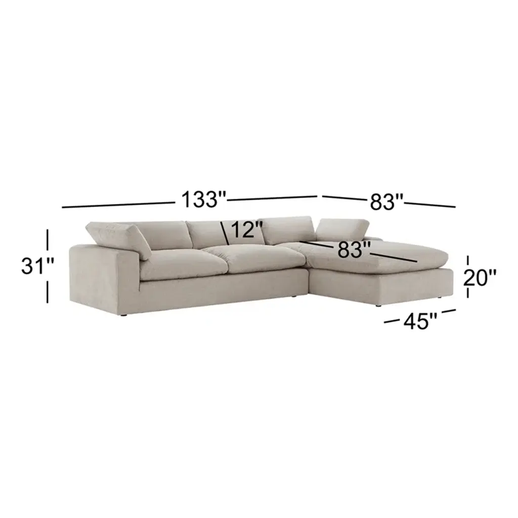 This 133" wide down cushion sofa & chaise includes 1 piece of the couch and a chaise. It can be suitable for a living room, bedroom, small apartment, loft, company, etc.