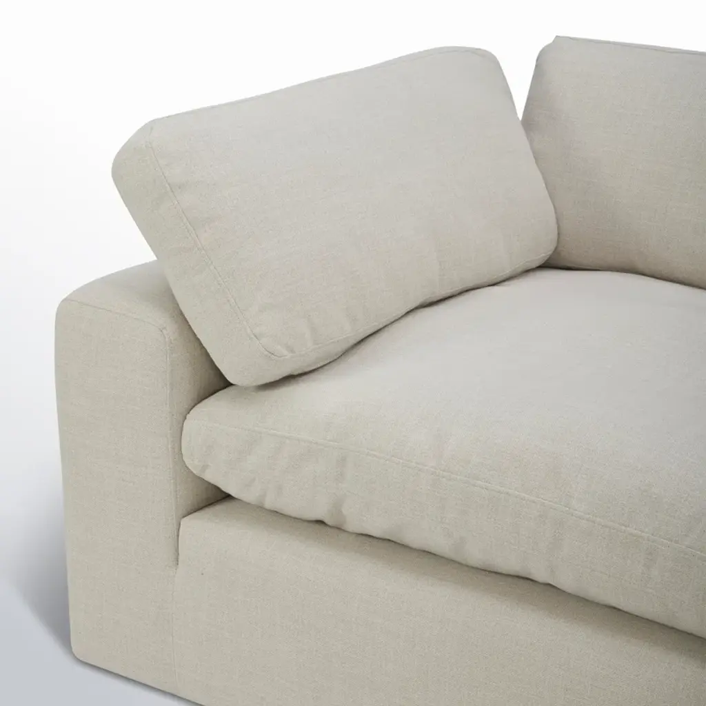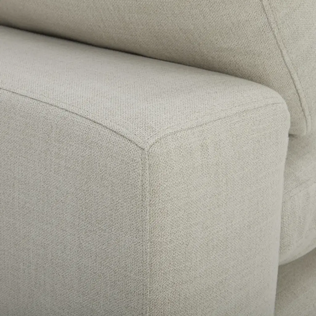 Go ahead, put your feet up. Our sofa and chaise sectional is upholstered in breathable linen and features a plush back complemented by modern square arms. Deep seating, down-filled cushions, and a low-profile design invite you to sink in and relax. Two toss pillows add a finishing touch. Plus, it's available in your choice of neutral hue. Love this look? Shop the entire collection.
