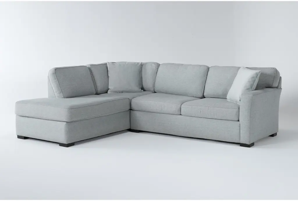 Aspen Tranquil Blue Performance Fabric Foam 108" 2 Piece Modular L-Shaped Sectional With Left Arm Facing Armless Chaise | Track Arms