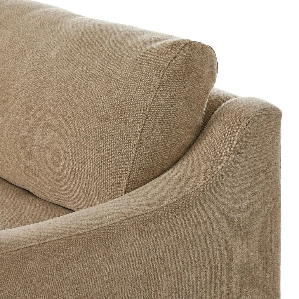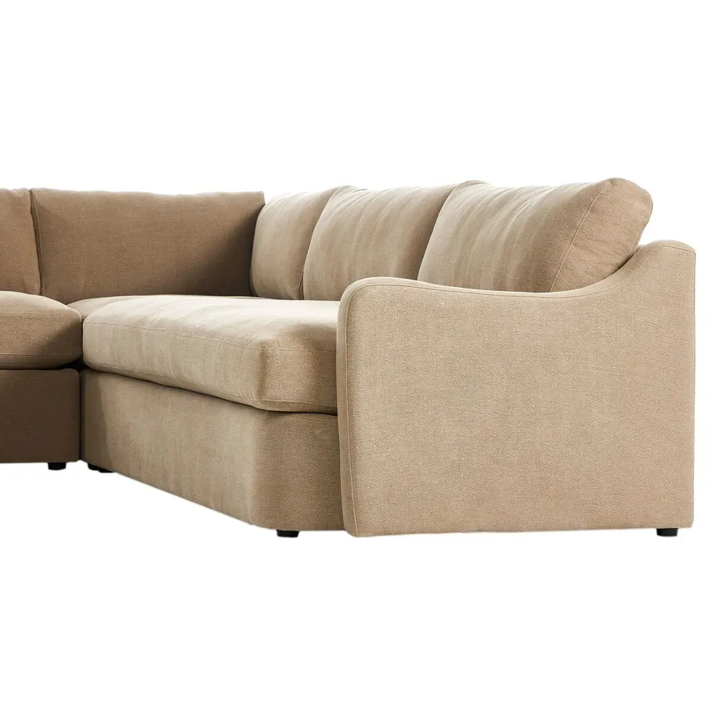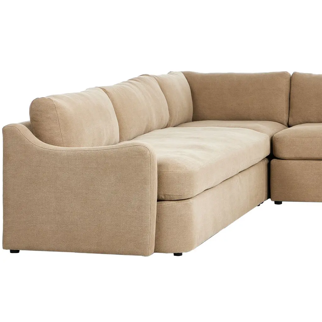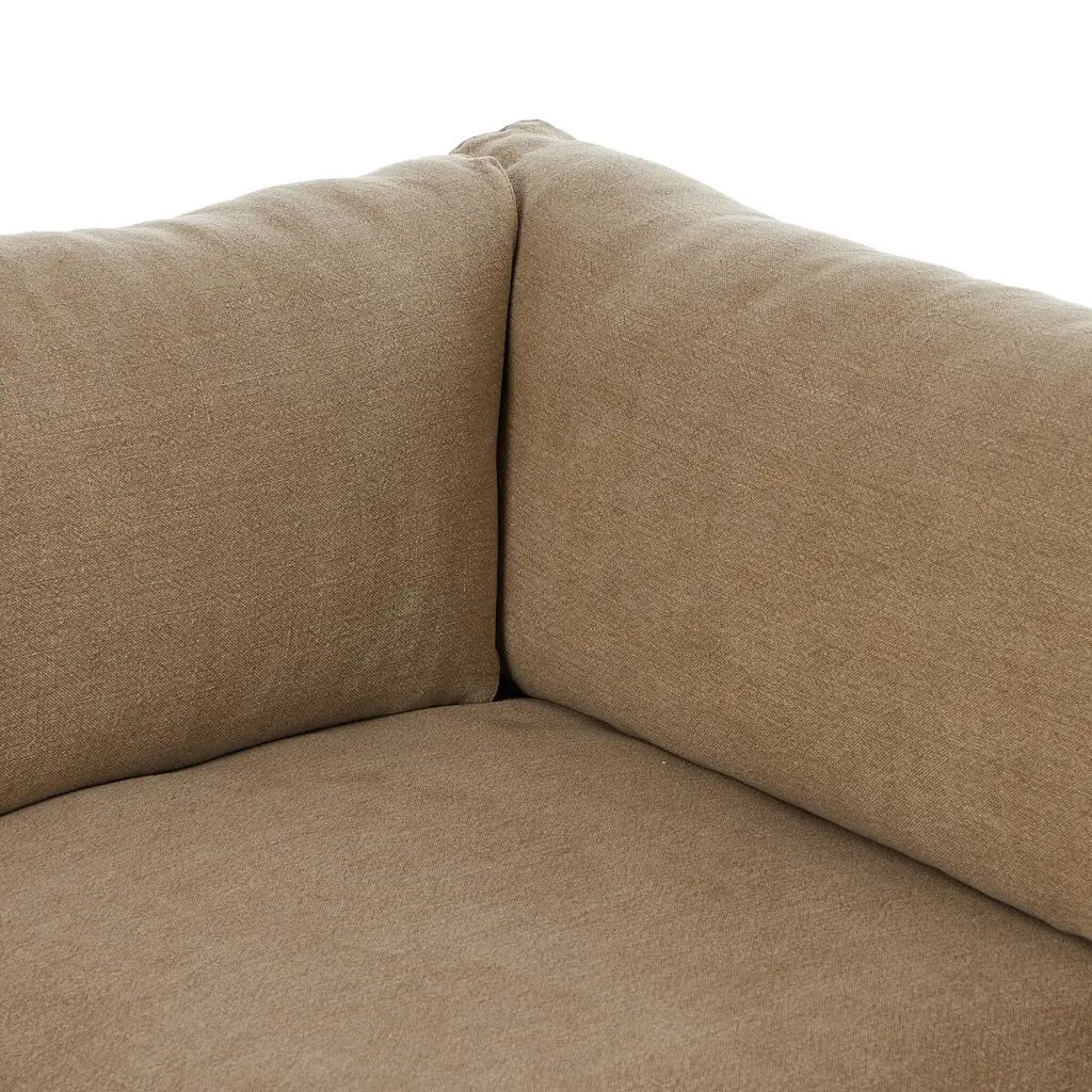 Heritage-inspired comfort. The three-piece sectional's sloping track arms and elongated front decking are a study in playful forms, while subtle boxing along the front perimeter maintains a simple, polished look. The boxed cushions incorporate a feather/fiber blend and S-spring suspension for the ultimate sink-in sit. A design collaboration by Amber Lewis and Four Hands.