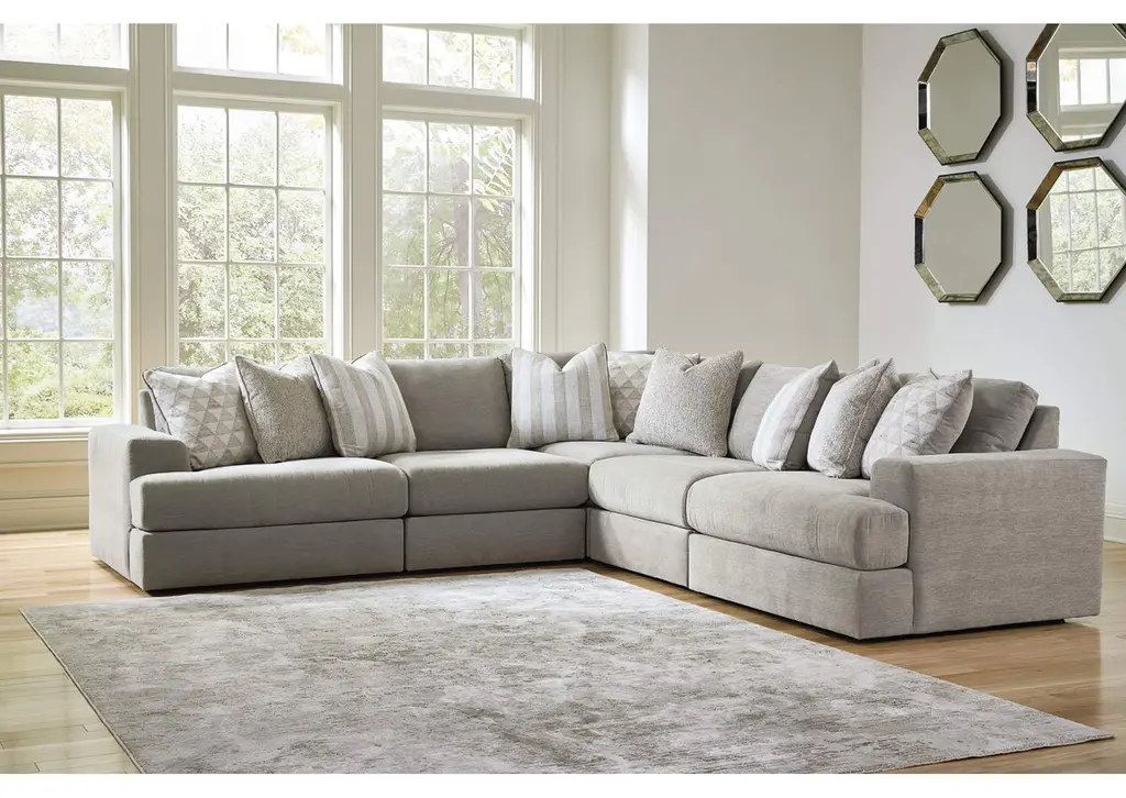 The casual, low-slung shape of the Avaliyah sectional makes it fully lounge-ready. Its deep seating invites you to sink right in, with bold beveled block arms that are softened by bullnose “waterfall” cushions. Best of all, the modular design lets you stage the pieces solo or rearrange them, for a look that's always fresh. Whether you're enjoying the company of friends or relaxing by yourself, this sectional's remarkable quality and smart style are sure to delight. Weight 425.000 lbs. (191.25kgs.)