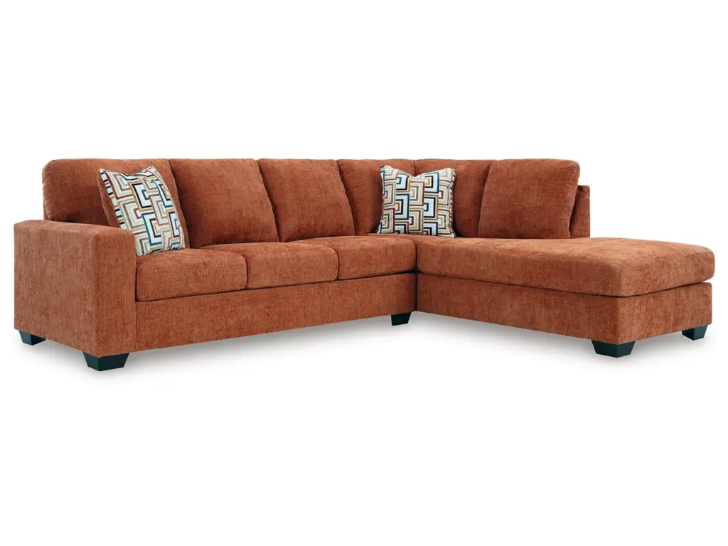 Looking to make a bold statement with color? Liven up your living room with the Aviemore sectional with chaise. Its trend-right burnt orange upholstery adds a playful pop of color to your decor. Bold and eclectic accent pillows complete the look. Pairing posh style with everyday comfort, this sectional is a welcome addition to contemporary spaces.