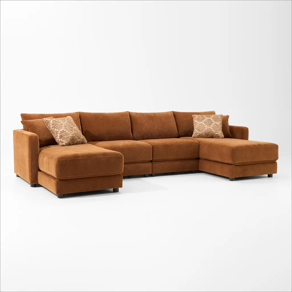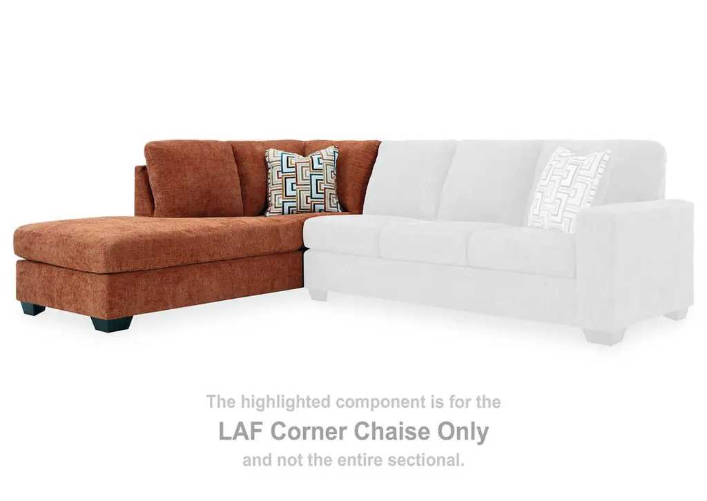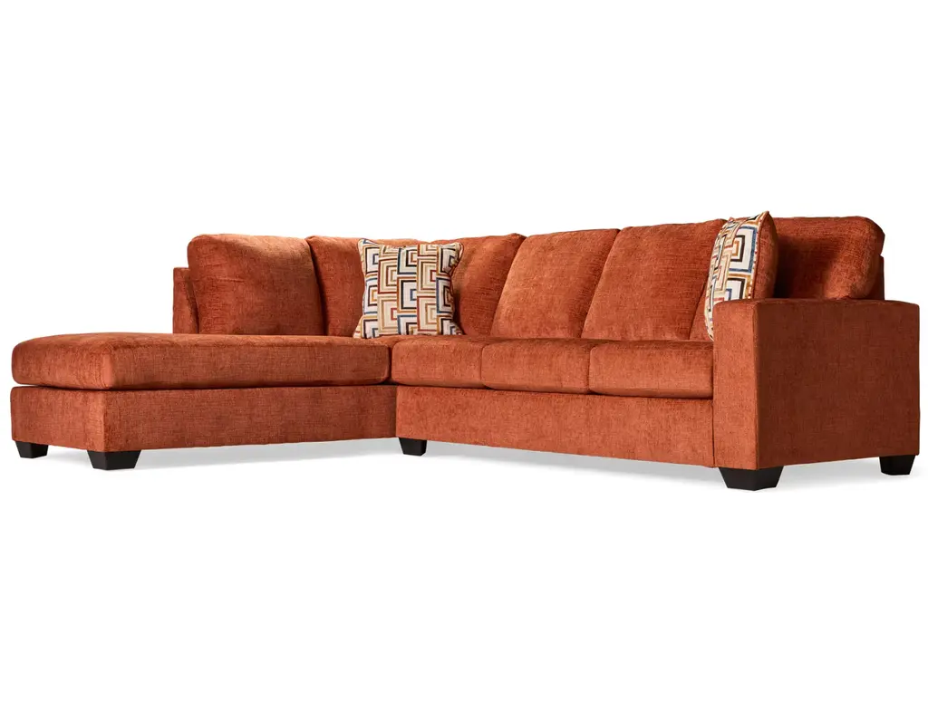 Looking to make a bold statement with color? Liven up your living room with the Aviemore sectional with chaise. Its trend-right burnt orange upholstery adds a playful pop of color to your decor. Bold and eclectic accent pillows complete the look. Pairing posh style with everyday comfort, this sectional is a welcome addition to contemporary spaces. Weight 231.000 lbs. (103.95kgs.)