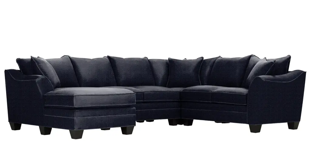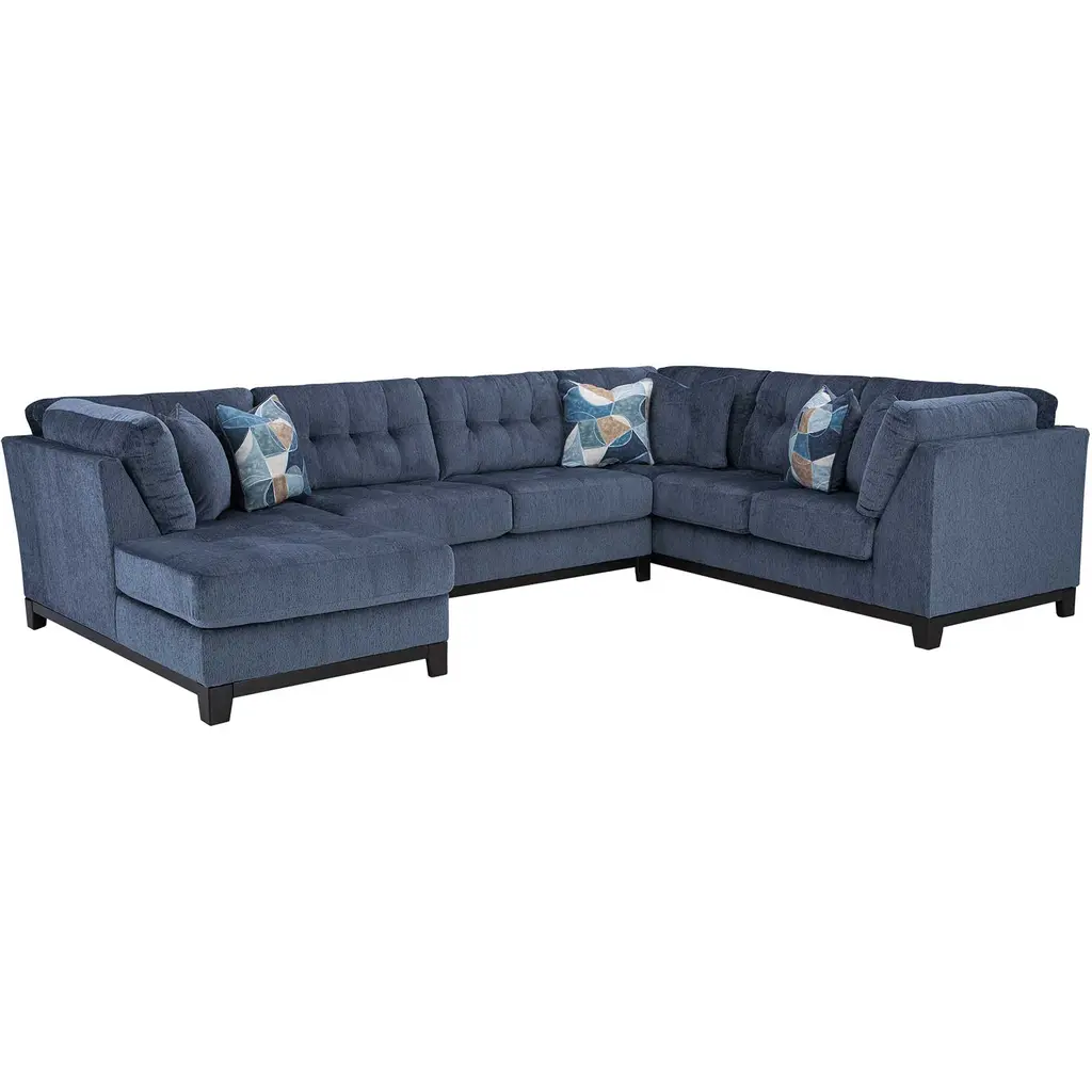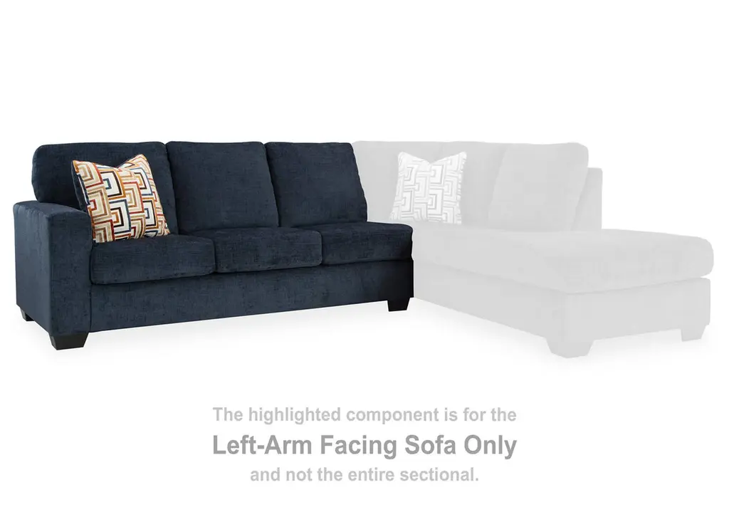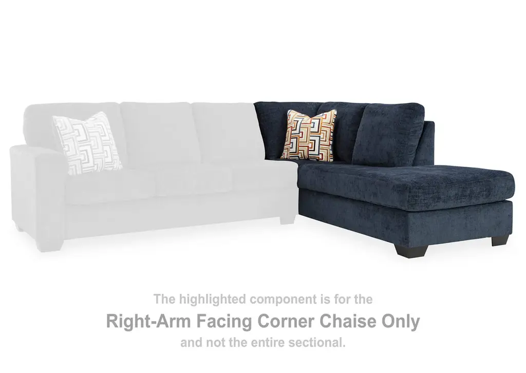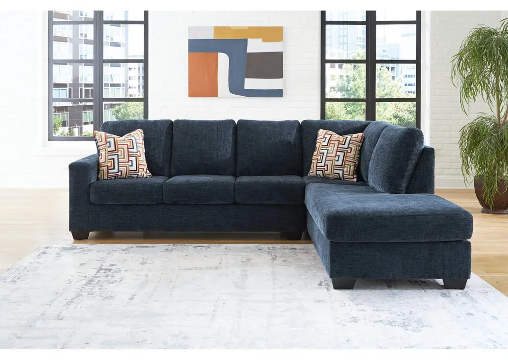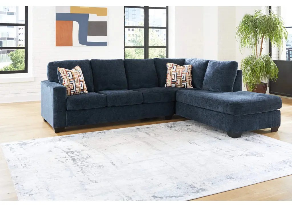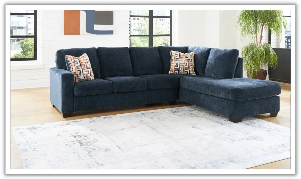 Looking to make a bold statement with color? Liven up your living room with the Aviemore sectional with chaise. Its trend-right navy blue upholstery adds a playful pop of color to your decor. Bold and eclectic accent pillows complete the look. Pairing posh style with everyday comfort, this sectional is a welcome addition to contemporary spaces. Weight 231.000 lbs. (103.95kgs.)