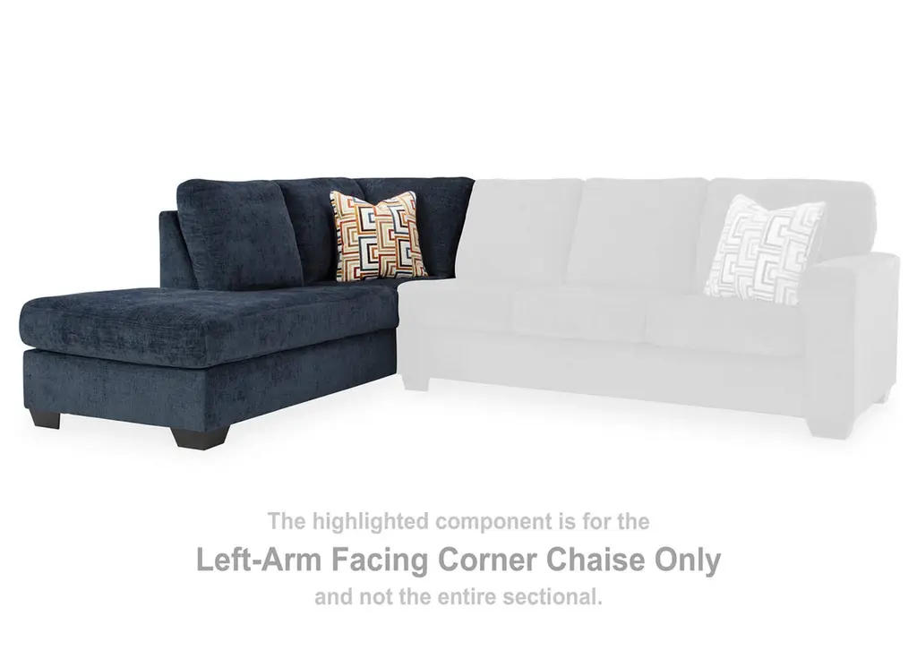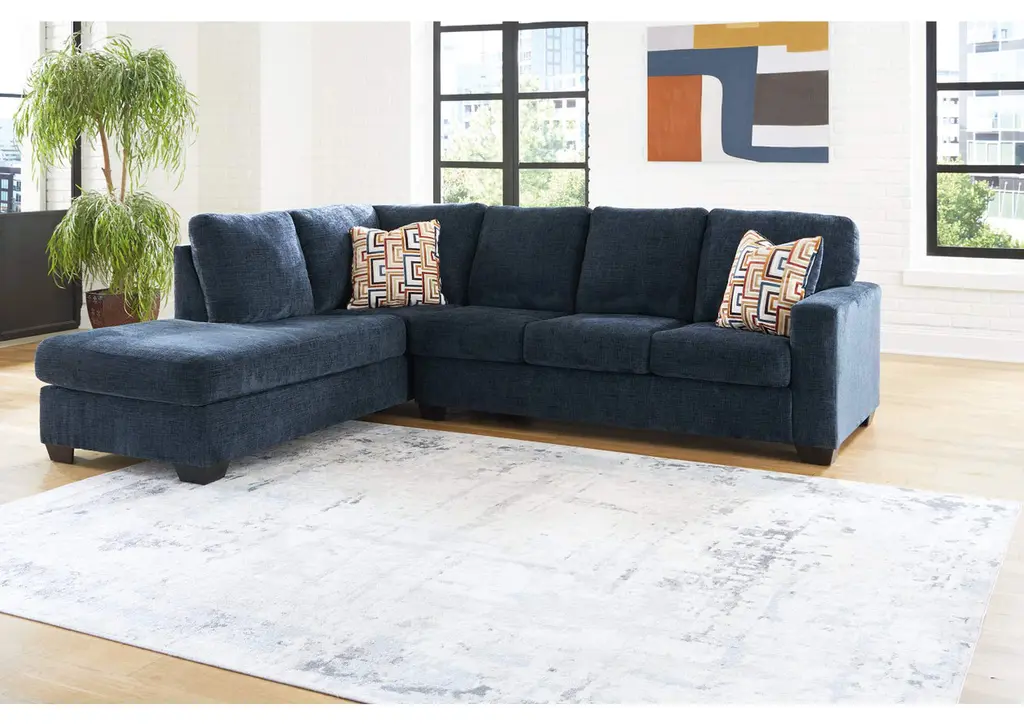 Looking to make a bold statement with color? Liven up your living room with the Aviemore sectional with chaise. Its trend-right navy blue upholstery adds a playful pop of color to your decor. Bold and eclectic accent pillows complete the look. Pairing posh style with everyday comfort, this sectional is a welcome addition to contemporary spaces. Weight 231.000 lbs. (103.95kgs.)