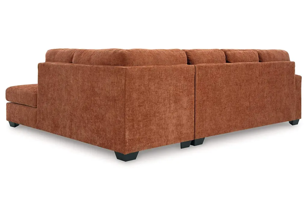 Looking to make a bold statement with color? Liven up your living room with the Aviemore sectional with chaise. Its trend-right burnt orange upholstery adds a playful pop of color to your decor. Bold and eclectic accent pillows complete the look. Pairing posh style with everyday comfort, this sectional is a welcome addition to contemporary spaces. Weight 231.000 lbs. (103.95kgs.)