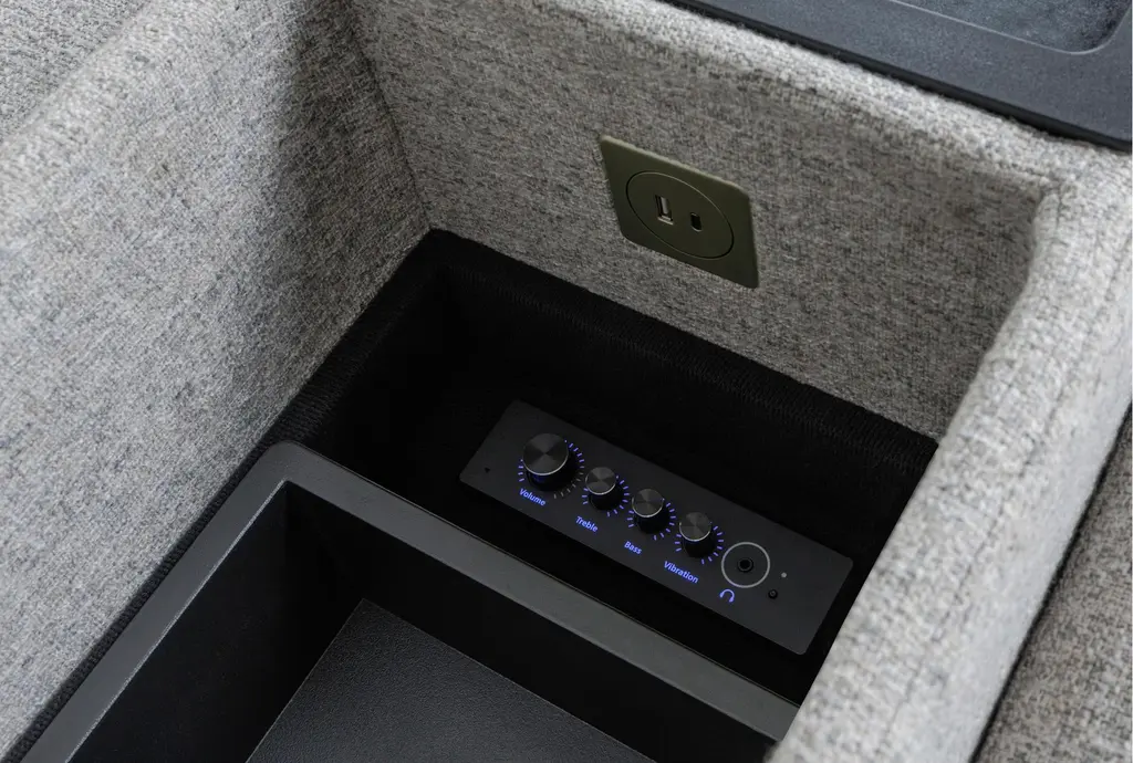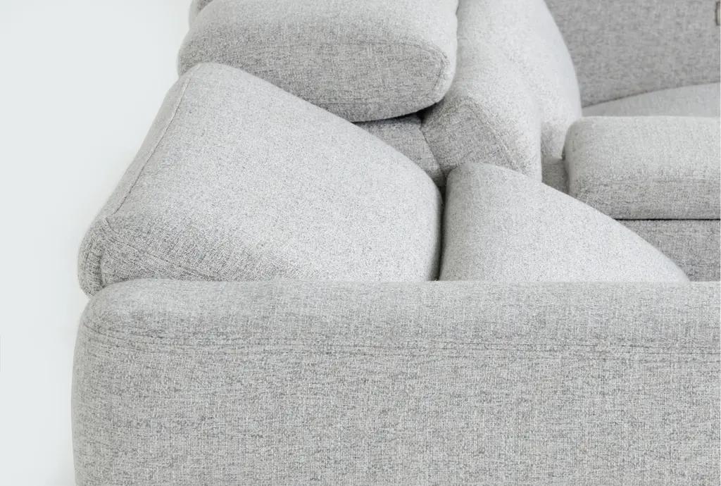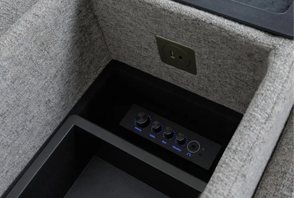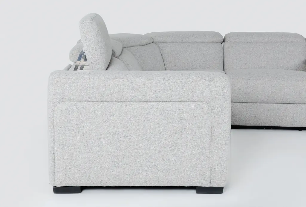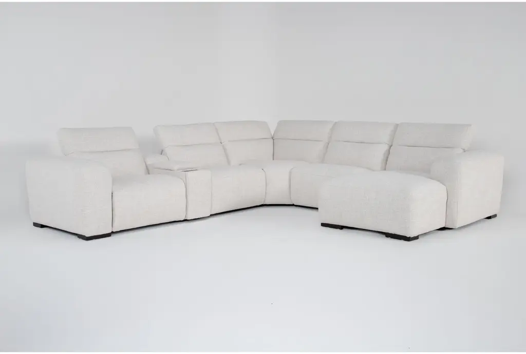 Experience ultimate relaxation with the Axis 130" 6 Piece Grey Power Reclining Immersive Audio Sectional. Designed for modern living rooms, this sectional offers adjustable headrests, a console, and USB connectivity to keep your devices charged. Enjoy immersive surround sound and a modular design that adapts to your space.