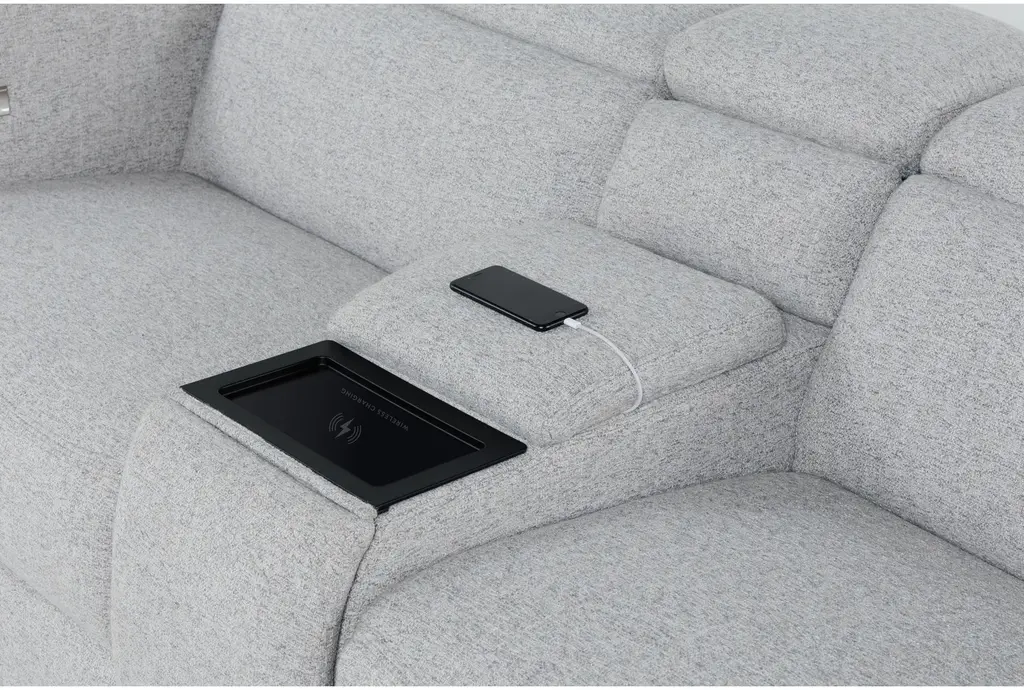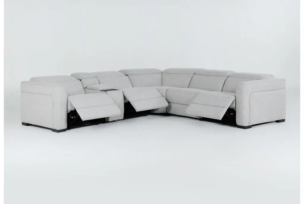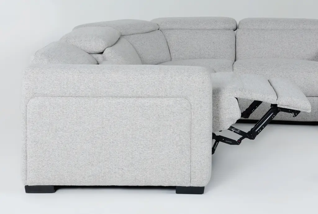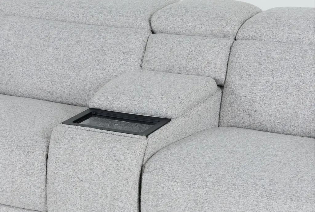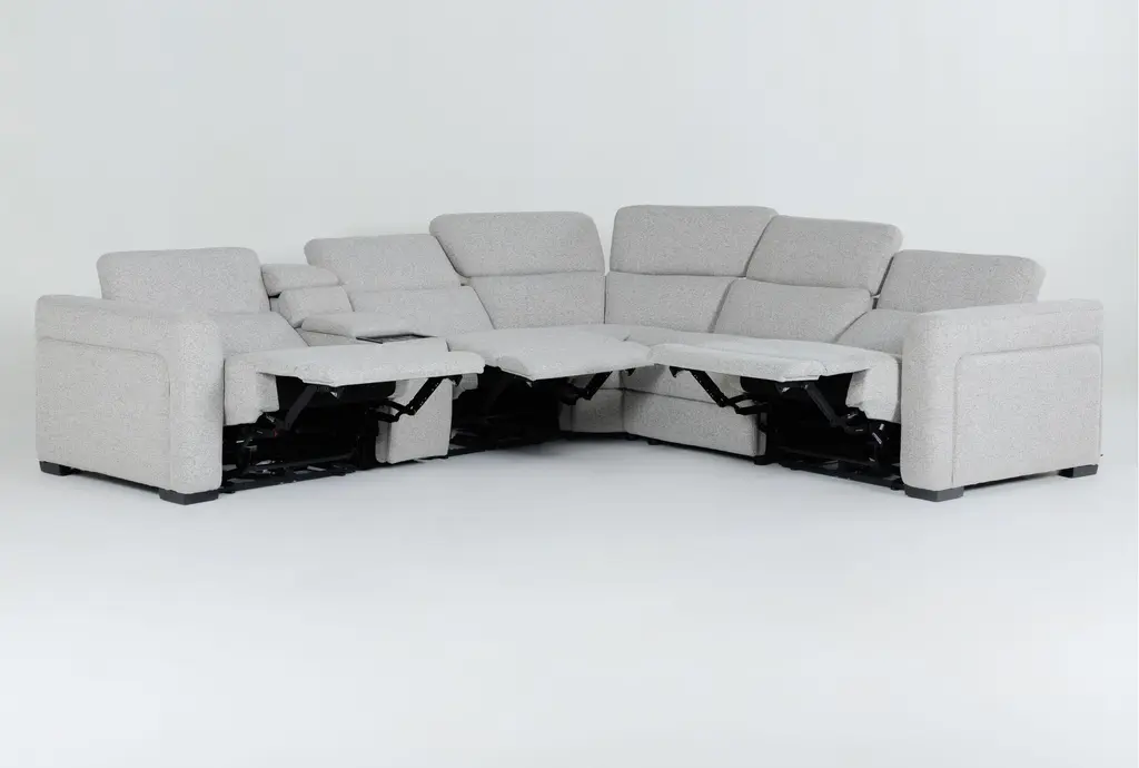 Axis 130" 6 Piece Grey Power Reclining Immersive Audio Sectional | Adjustable Headrests | Fabric | Console