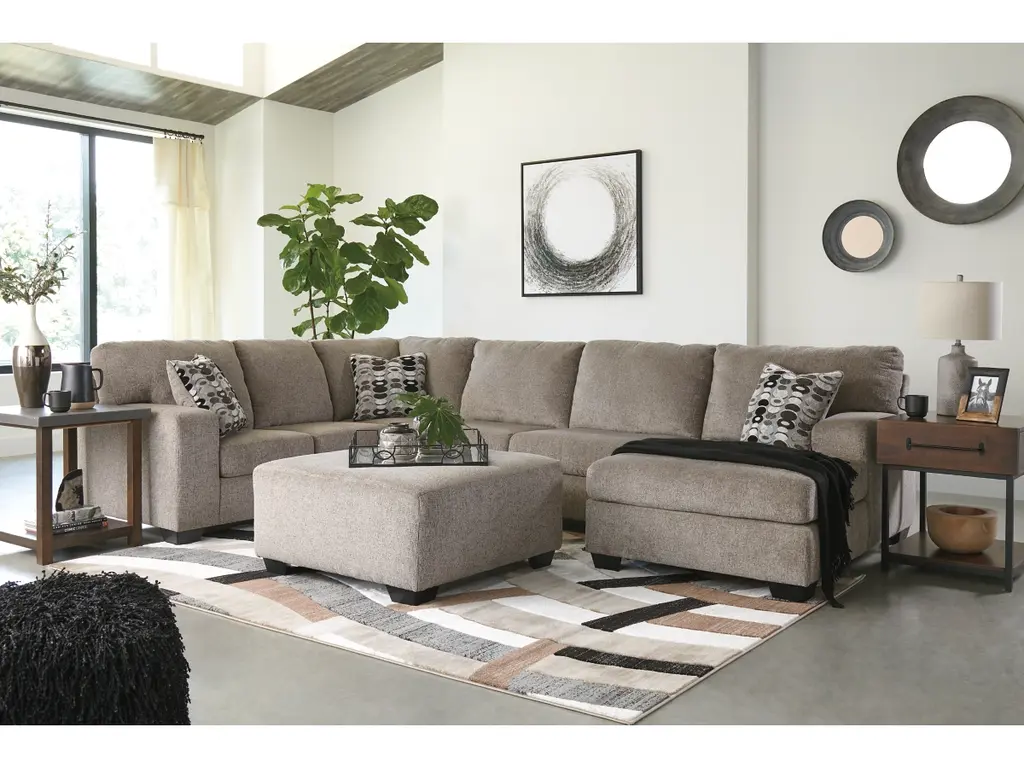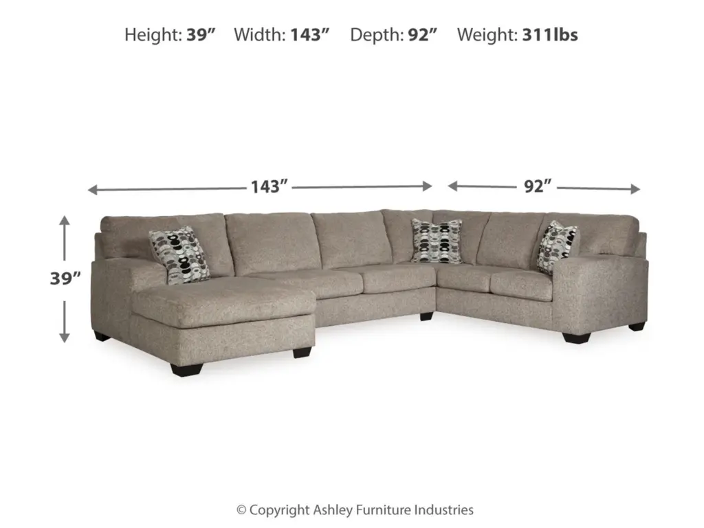 A mastery in less is more, the Ballinasloe sectional manages to make cool, contemporary design so warm and cozy. A new twist on neutral, the sectional’s soothing "platinum" tone upholstery is incredibly plush to the touch. Gently rounded corners give the clean-lined profile a sense of ease, for a high-style look that’s ultra inviting.