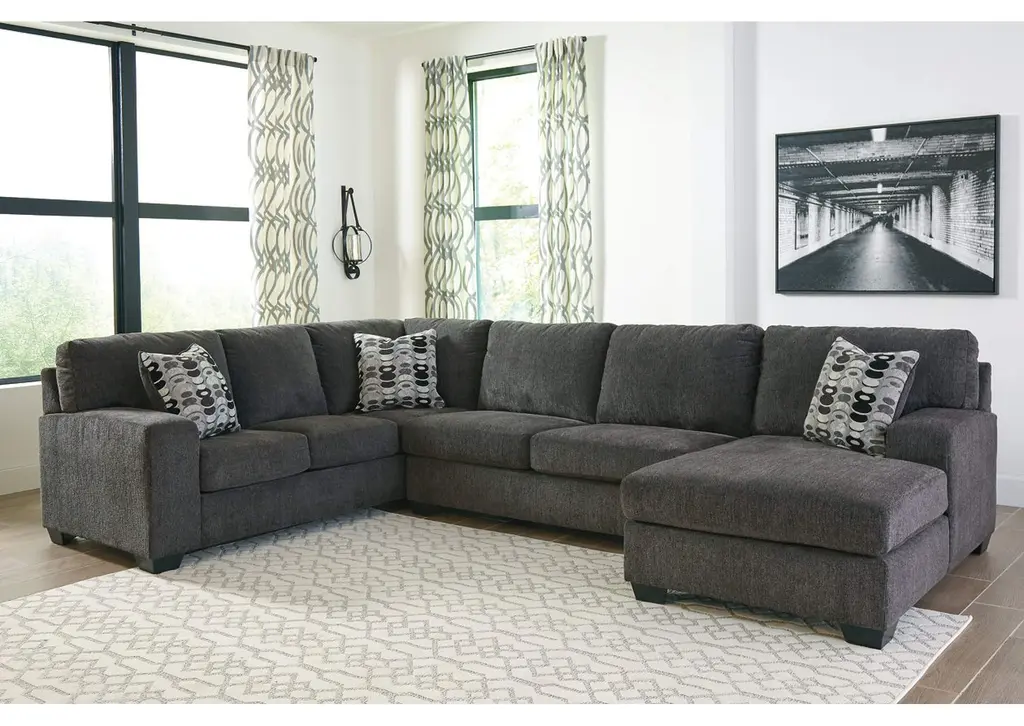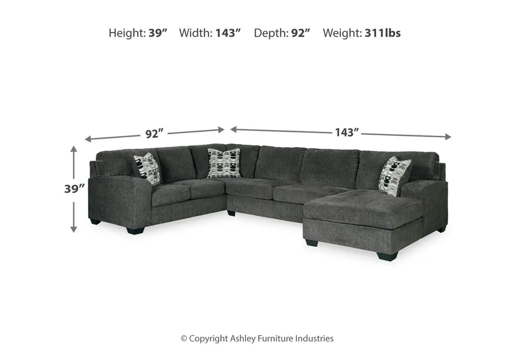 A mastery in "less is more," the Ballinasloe sectional manages to make cool, contemporary design so warm and cozy. Its smoky gray upholstery, incredibly plush to the touch, is a new twist on neutral. Gently rounded corners give the clean-lined profile a sense of ease, for a high-style look that’s ultra inviting. Weight 323.000 lbs. (145.35kgs.)
