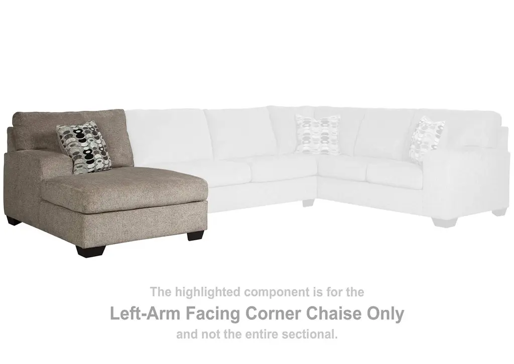A mastery in less is more, the Ballinasloe sectional manages to make cool, contemporary design so warm and cozy. A new twist on neutral, the sectional’s soothing "platinum" tone upholstery is incredibly plush to the touch. Gently rounded corners give the clean-lined profile a sense of ease, for a high-style look that’s ultra inviting. Weight 323.000 lbs. (145.35kgs.)