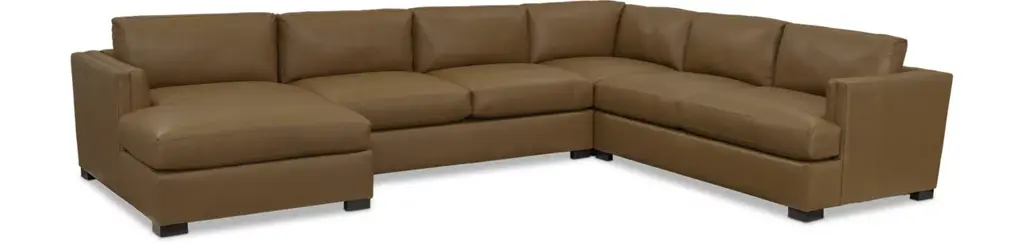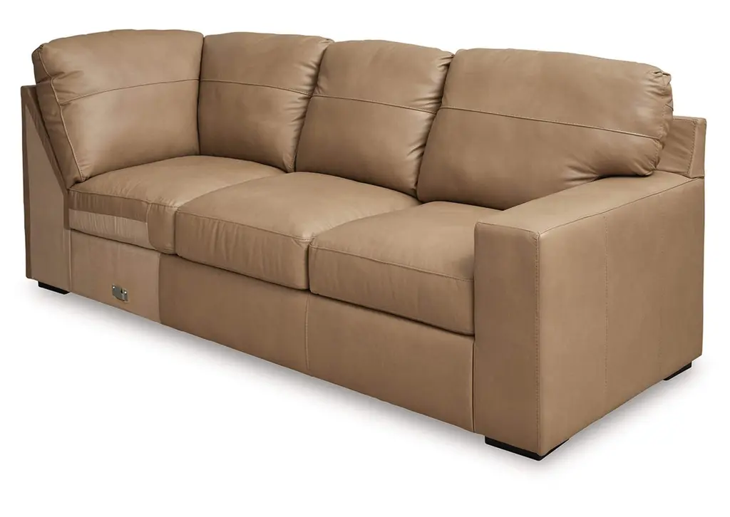 Indulge in attainable, top-of-the-line luxury. With the Bandon sectional, you can outfit your home in ultra-sleek style. Genuine leather upholstery on the interior provides the richly refined look and feel you love without breaking the bank. Clean-lined arms polish off the contemporary design. Weight 382.000 lbs. (171.9kgs.)