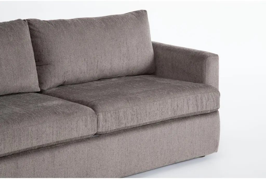 The Basil Grey Brown Fabric Modular 125" 4 Piece L-Shaped Sectional is designed to bring comfort and style to your living room. With its Bear Hug Grey fabric and modern design, this sectional is both versatile and visually appealing. The reversible orientation and loose back cushions offer flexibility and ease in arrangement.