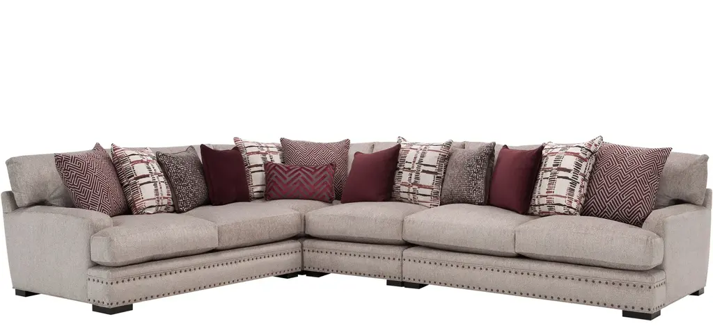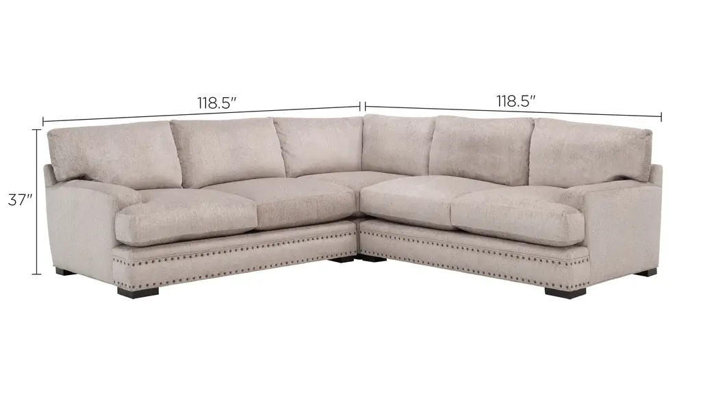 If you're looking for a comfortable yet classy sofa with space and room for all your family members and guests, then consider the Bayside 3-pc. sectional sofa. The luxurious chenille fabric paired with the nailhead frim and decorative pillows makes this a top choice. Plus, it's super easy to style any way you'd like.