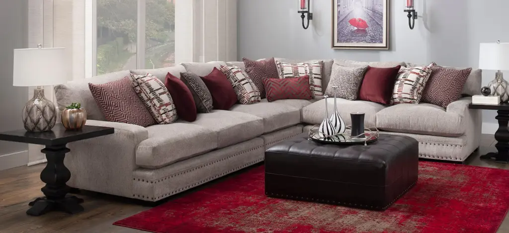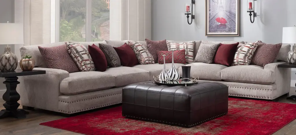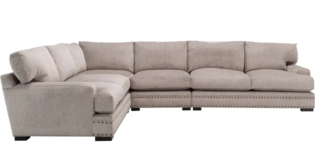 If you're looking for a comfortable yet classy sofa with space and room for all your family members and guests, then consider the Bayside 4-pc. sectional sofa. The luxurious chenille fabric paired with the nailhead frim and decorative pillows makes this a top choice. Plus, it's super easy to style any way you'd like.
