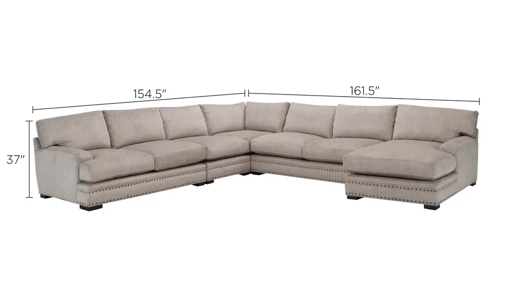 If you're looking for a comfortable yet classy sofa with space and room for all your family members and guests, then consider the Bayside 5-pc. sectional sofa. The luxurious chenille fabric paired with the nailhead frim and decorative pillows makes this a top choice. Plus, it's super easy to style any way you'd like.