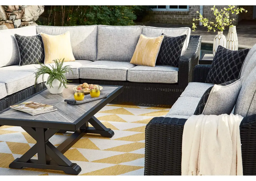 Sporting an easy-on-the-eyes elegance, the Beachcroft sectional elevates the art of alfresco living. Beautiful and durable enough for indoor and outdoor use, this high-style/low-maintenance set entices with plush, removable cushions wrapped in Nuvella® fabric that’s a breeze to keep clean. Weight 206.000 lbs. (92.7kgs.)