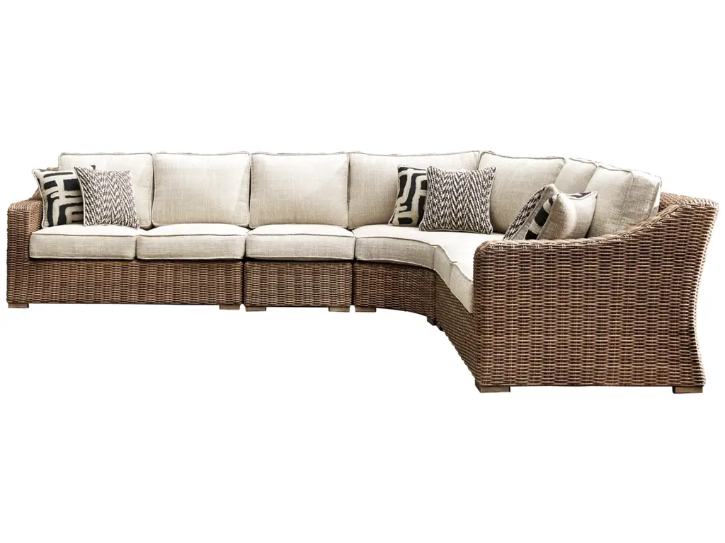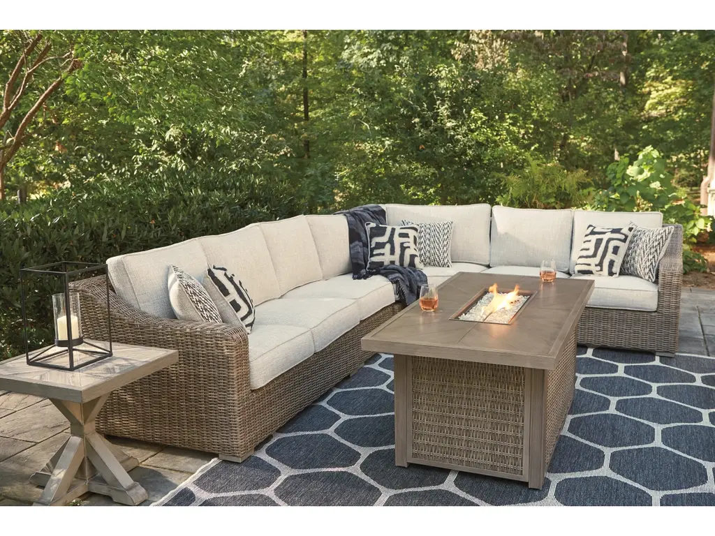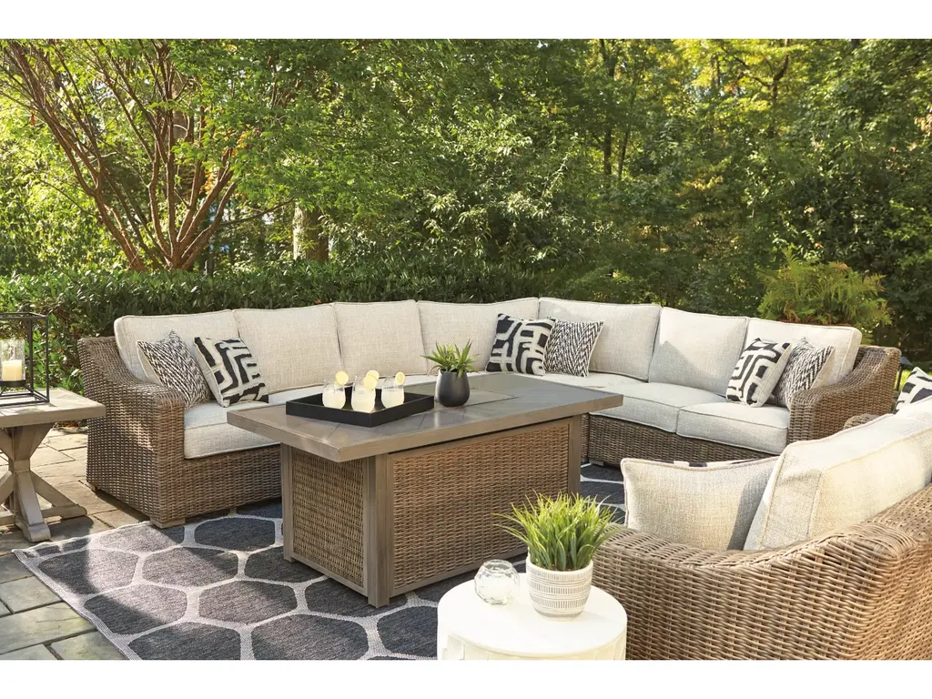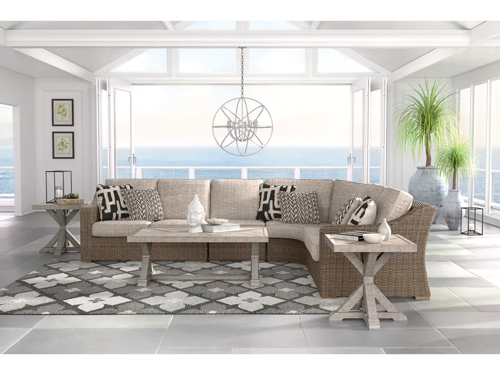 Sporting an easy-on-the-eyes look inspired by driftwood, the Beachcroft sectional elevates the art of alfresco living. Beautiful and durable enough for indoor and outdoor use, this high-style/low-maintenance set entices with plush, removable cushions wrapped in Nuvella® fabric that’s a breeze to keep clean.