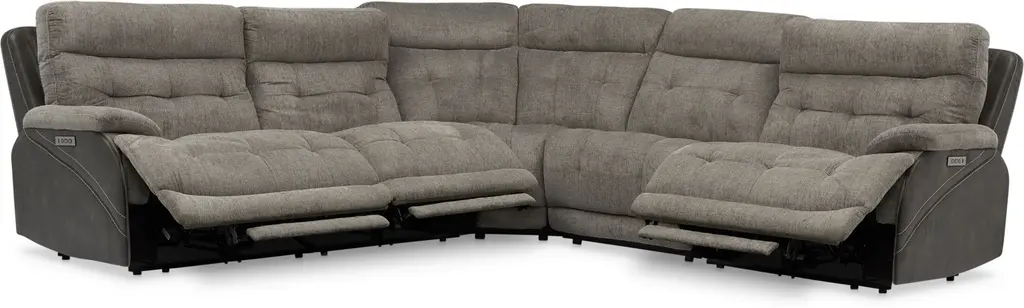 Beckett 5-Piece Dual-Power Reclining Sectional With 3 Reclining Seats - Gray