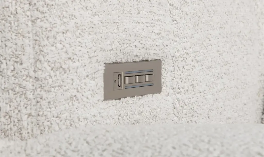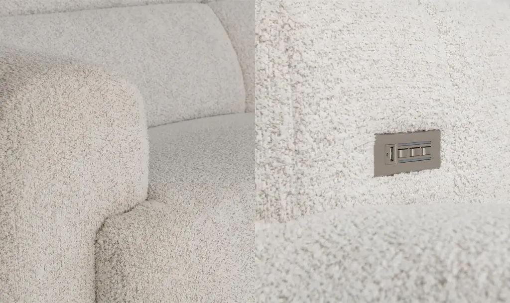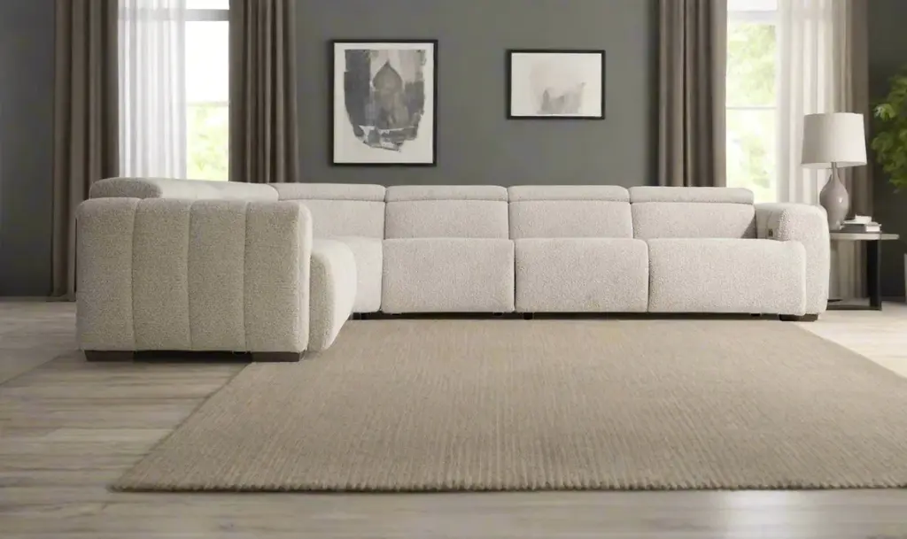 Experience deep relaxation with the Aldo 4-Piece Power Motion Sectional, expertly designed for comfort and modern functionality. This sectional features a power motion left-arm sofa, a right-arm sofa, an armless piece, and a corner piece, all with built-in power recline functions. As you engage the recline, the seats transform into power footrests while the headrests adjust seamlessly for optimal support. Hidden controls in the armrest include USB ports, ensuring your devices stay charged while you relax. Crafted from durable engineered hardwood, high-quality polyester, and sturdy steel, the Aldo Sectional promises both longevity and a sleek, light gray aesthetic that complements any living space. With power headrests and footrests that adjust smoothly into various seating positions, this sectional offers customized comfort for any occasion, whether it's lounging, reading, or watching your favorite show. Elevate your home relaxation experience with the Aldo Sectional's blend of style, technology, and superior craftsmanship.Built-In USB ChargersThis item is equipped with built-in USB charger(s), providing a convenient solution to keep your cell phones, tablets, and other devices charged and ready to use. Arlo's durability is specifically designed for active family environments, making it an ideal piece for your busy living space. Recline and Watch - Power HeadrestsExperience ultimate relaxation with our recliners featuring Power Headrests, designed to enhance your TV viewing experience. When reclined, adjusting back to a sitting position can be a hassle, especially when watching TV. Our power headrest recliner eliminates this inconvenience, allowing you to save your neck and maintain a perfect viewing angle for TV or reading. The gentle power motion, which customizes the position of your back and legrest, extends to the headrest. Now, you can effortlessly adjust the headrest angle to better cradle your body, ensuring optimal comfort and support.