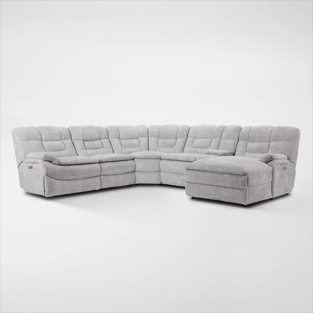 Big Softie 6-Piece Dual-Power Reclining Sectional W/ Right-Facing Chaise & 2 Reclining Seats - Gray