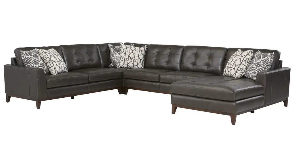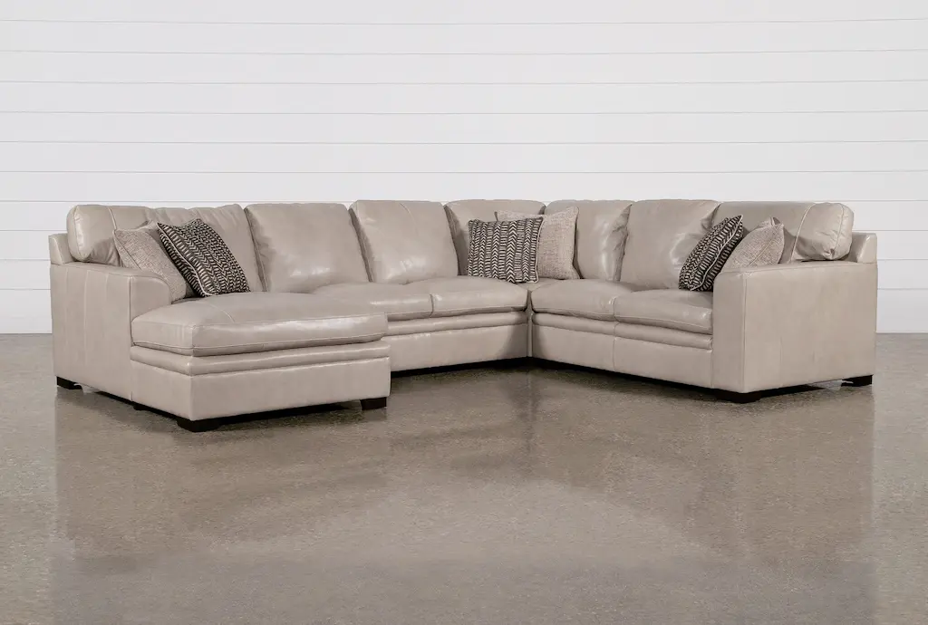 The Big Sur Blue Leather 169" 4 Piece U-Shaped Modular Sectional with Armless Sofa Left Arm Facing Chaise & Chair is a versatile and comfortable addition to your living room. Crafted from 100% leather, this sectional offers a luxurious feel and durable construction. The left arm facing chaise and armless sofa provide ample seating and lounging options for your family and guests.