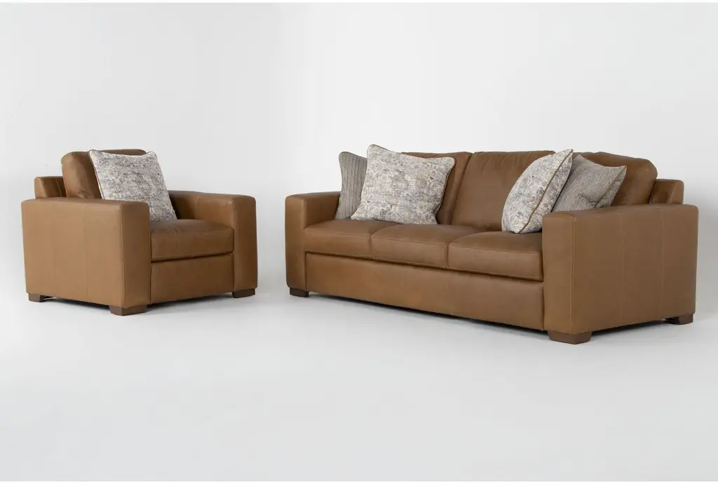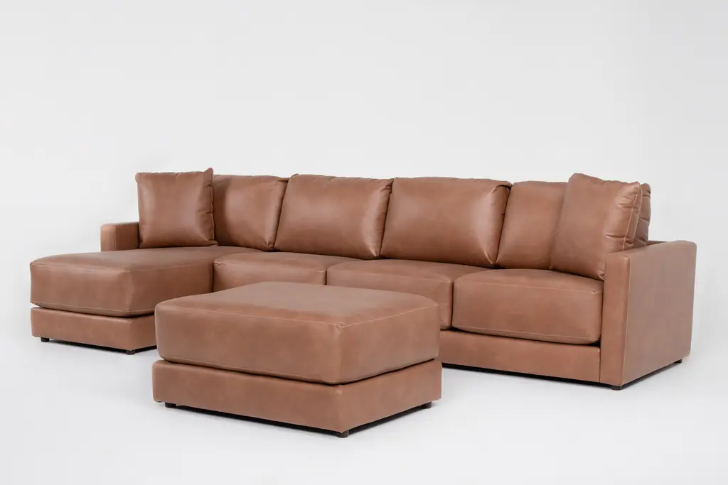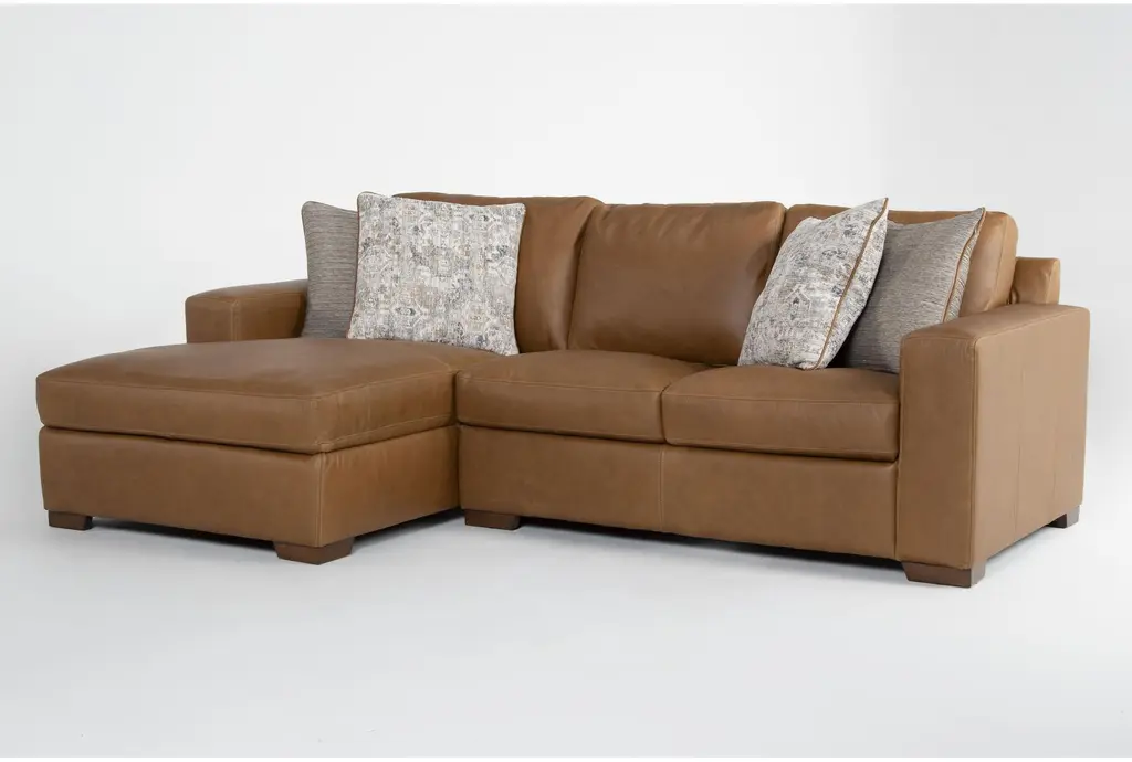 Introducing the Big Sur Saddle Brown Natural Leather 2 Piece Modular Sectional with Left Arm Facing Chaise & Cocktail Ottoman. This casual sectional is designed to bring comfort and style to your living room. The tufted detailing adds a touch of sophistication to the natural leather upholstery.