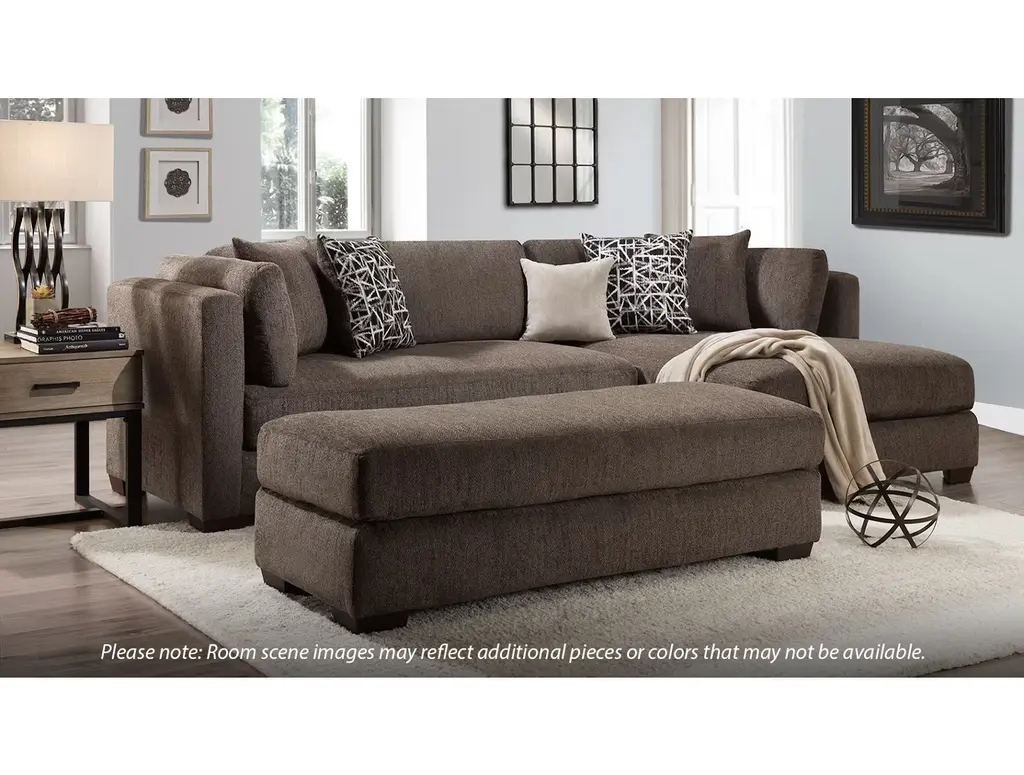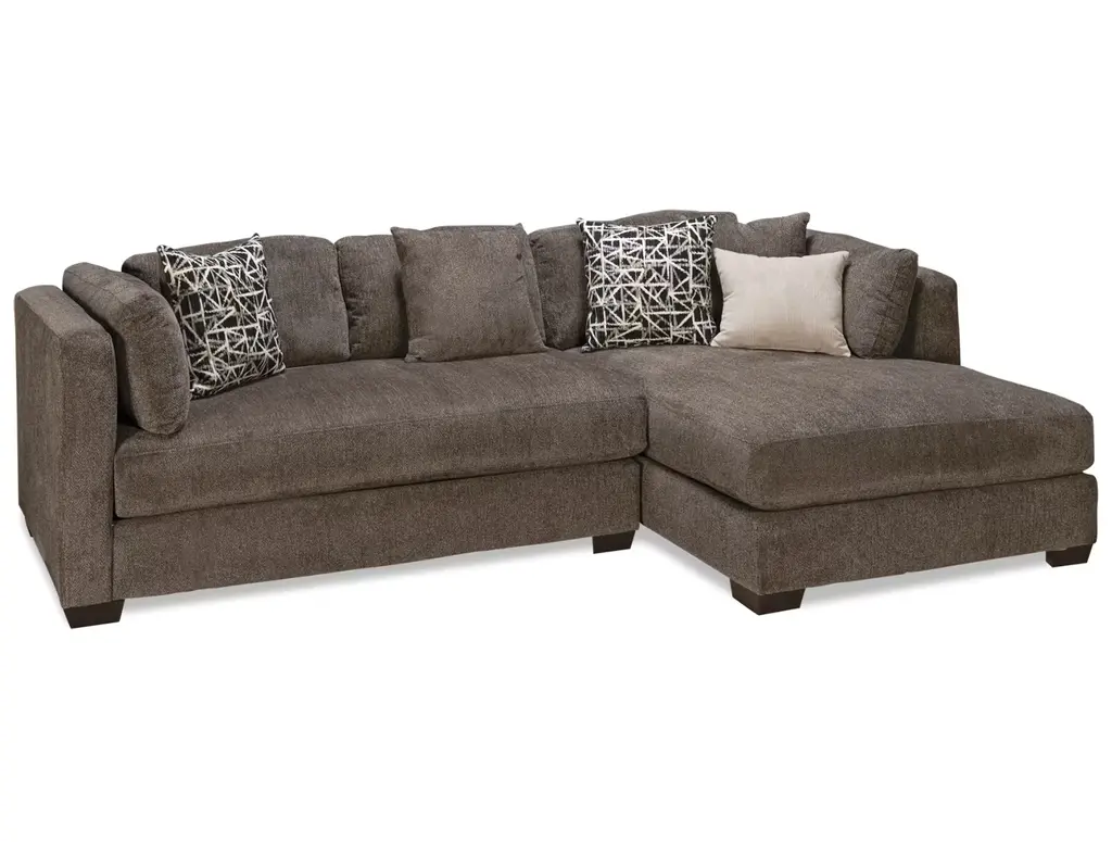 Clean, modern, and cozy, the Peak Living 2 Piece Sectional will elevate your living space. This plush pillow-back sectional features a chaise lounge, track arms, block feet, and five coordinating toss pillows for added comfort and style.