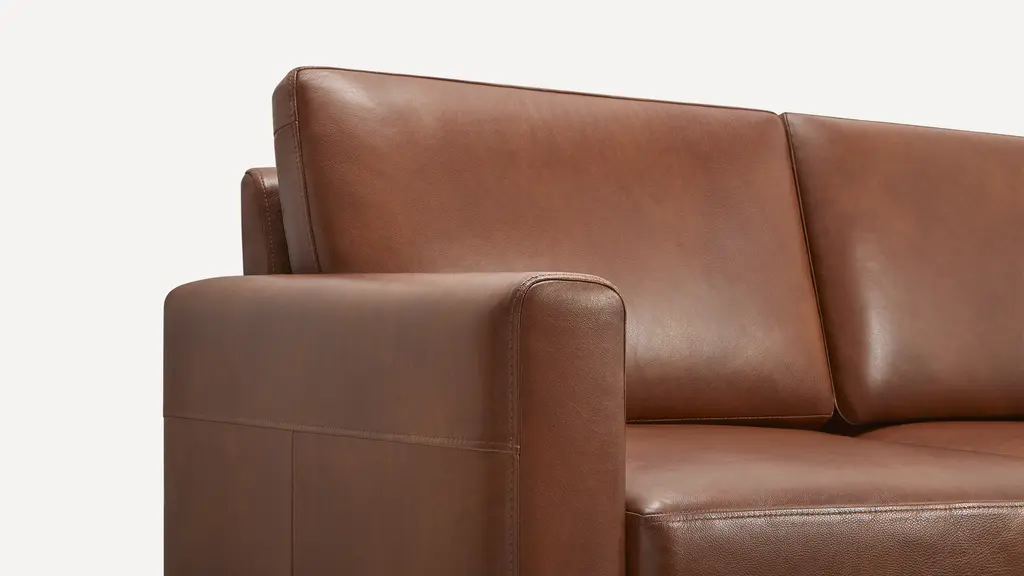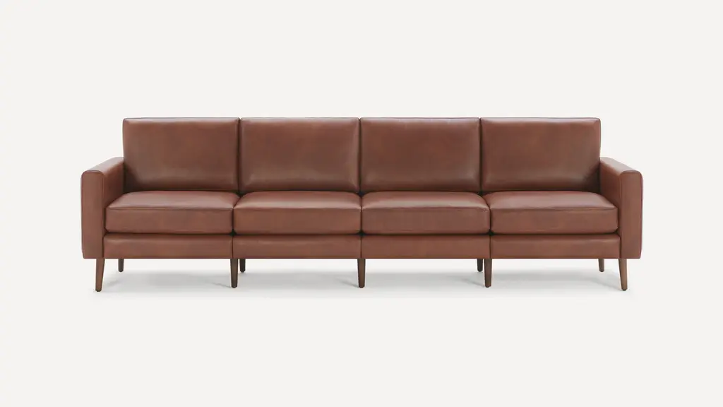 Large and in charge is how we'd describe our Nomad Leather King Sofa. In fact, it is how we describe it. Right here. This arrangement has four seat sections, each wrapped in soft, supple, and sophisticated top-grain Italian leather. Like everything we make, our modular design is incredibly easy to move and packed with all the clever, life-changing features you expect from Burrow, starting with a built-in USB charger.
