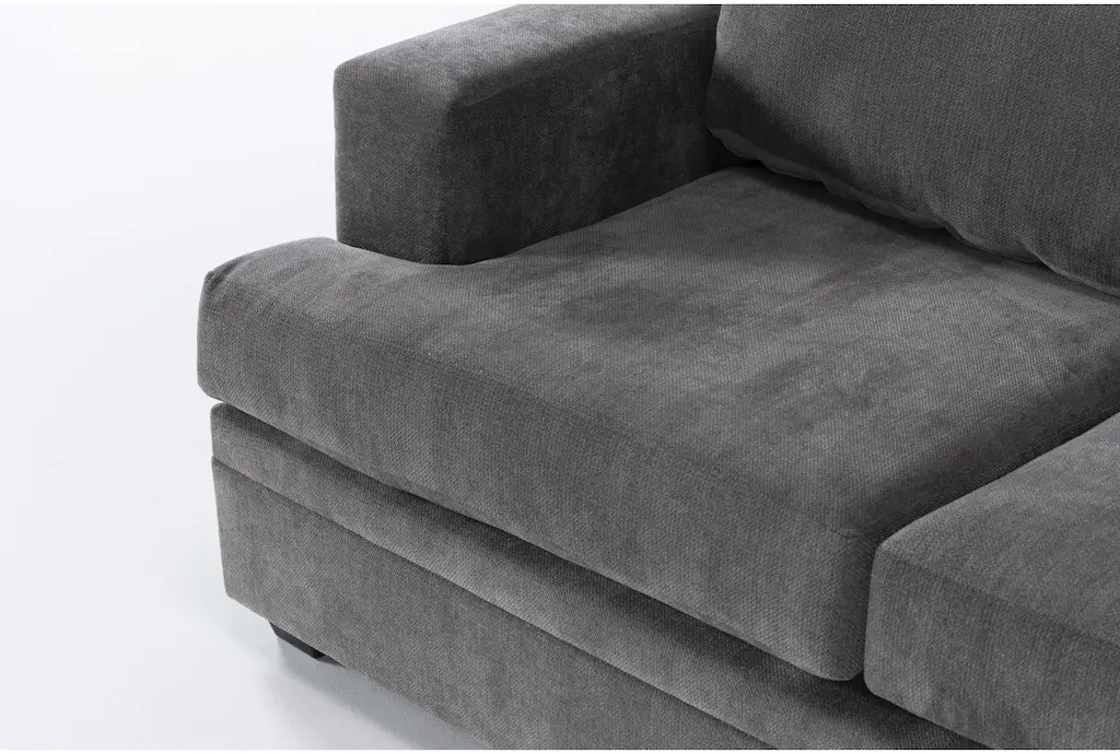 Bring casual comfort to your living room with the Bonaterra Charcoal Grey Fabric 127" 2 Piece L-Shaped Sectional with Right Arm Facing Corner Chaise. Featuring track arms and loose foam cushions, this sectional offers a relaxed seating experience. The charcoal grey fabric and tapered legs add a touch of sophistication to your space.