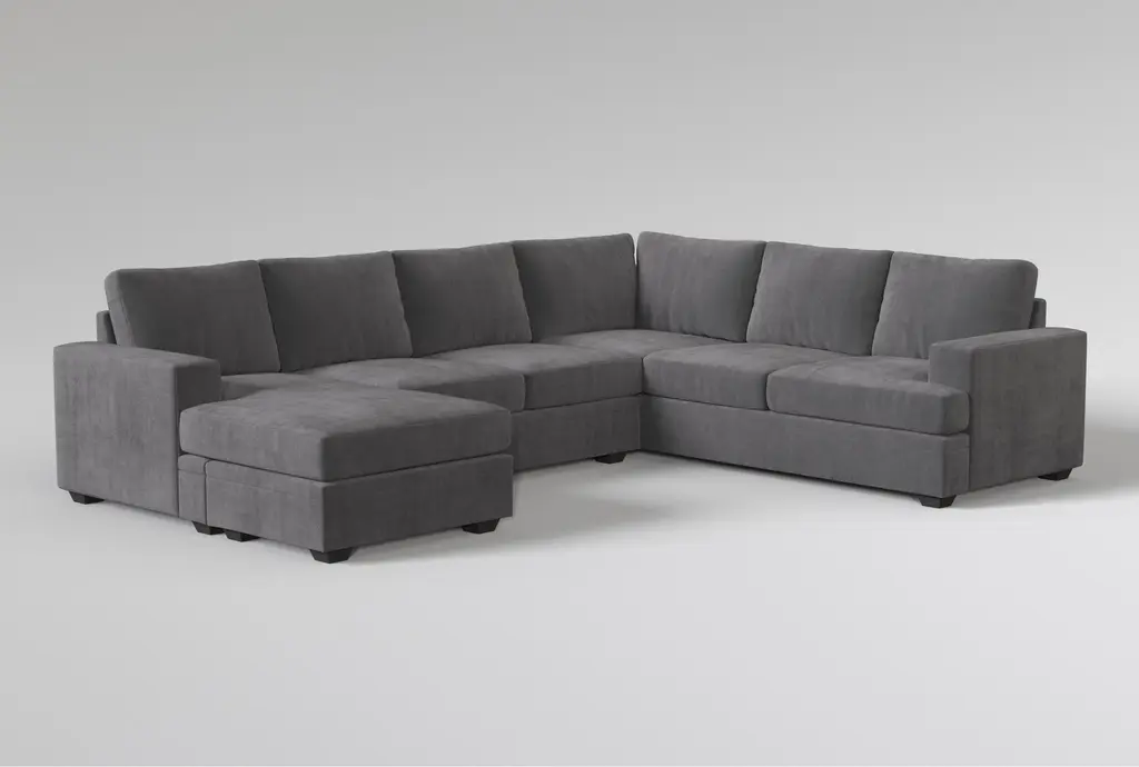 Introducing the Bonaterra Charcoal Grey Fabric 127" 2 Piece U-Shaped Sectional with Left Arm Facing Queen Memory Foam Sleeper Sofa Bed Chaise. This casual sectional is perfect for your living room, offering both style and comfort. Upholstered in charcoal grey fabric, it features a queen-size memory foam sleeper, making it ideal for accommodating overnight guests.