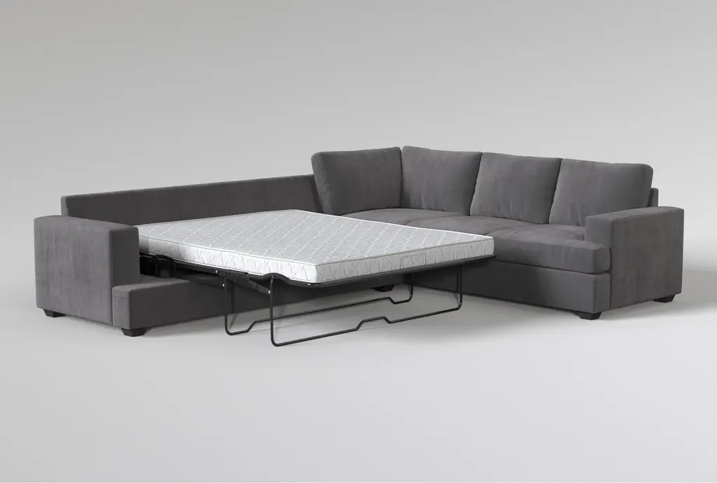 Bonaterra Charcoal Grey Fabric 127" 2 Piece U-Shaped Sectional With Left Arm Facing Queen Memory Foam Sleeper Sofa Bed Chaise