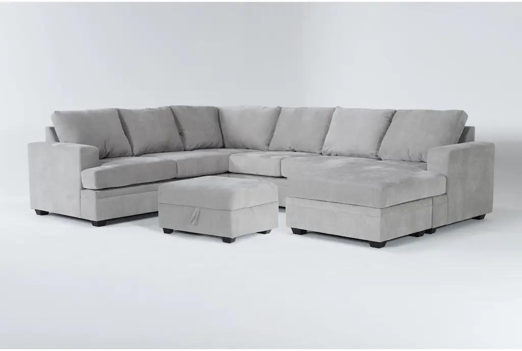 Bonaterra Dove Grey Fabric 127" 2 Piece U-Shaped Sectional With Right Arm Facing Sofa Chaise & Storage Ottoman