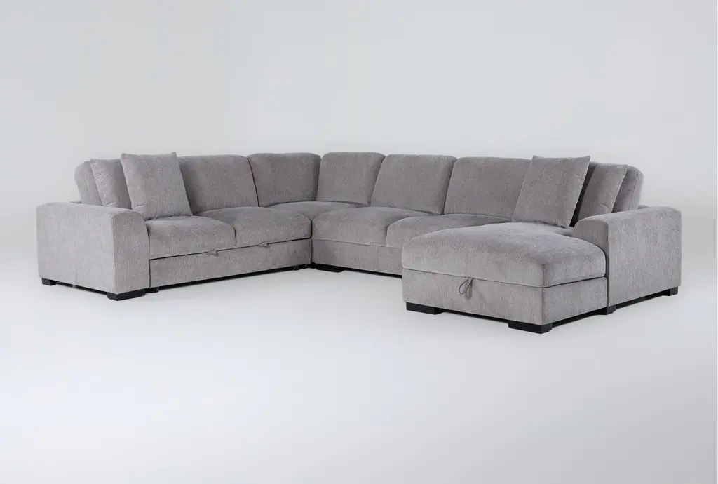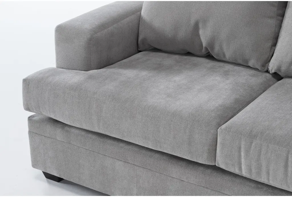 The Bonaterra Dove Grey Fabric 127" 2 Piece U-Shaped Sectional with Right Arm Facing Sofa Chaise & Storage Ottoman perfectly blends comfort and style for your living room. Crafted in a casual design, this sectional features soft dove grey fabric that creates a welcoming atmosphere. Ideal for family gatherings or cozy evenings, its reversible orientation allows for versatile seating arrangements.