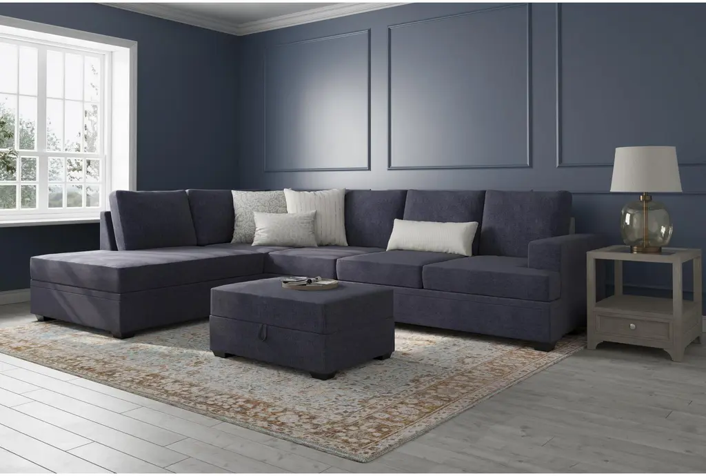 Bonaterra Midnight Navy Blue Fabric 127" 2 Piece L-Shaped Sectional With Left Arm Facing Corner Chaise | Track Arms