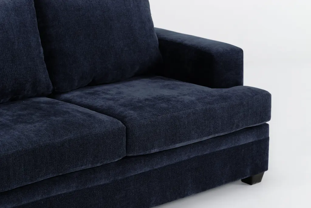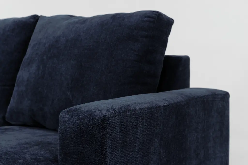 Experience the ultimate in comfort and style with the Bonaterra Midnight Navy Blue Fabric 127" 2 Piece L-Shaped Sectional with Right Arm Facing Sofa & Storage Ottoman. This casual sectional is perfect for any living room, offering a versatile and timeless design. The deep blue color and plush fabric provide a cozy yet sophisticated seating option for your home.