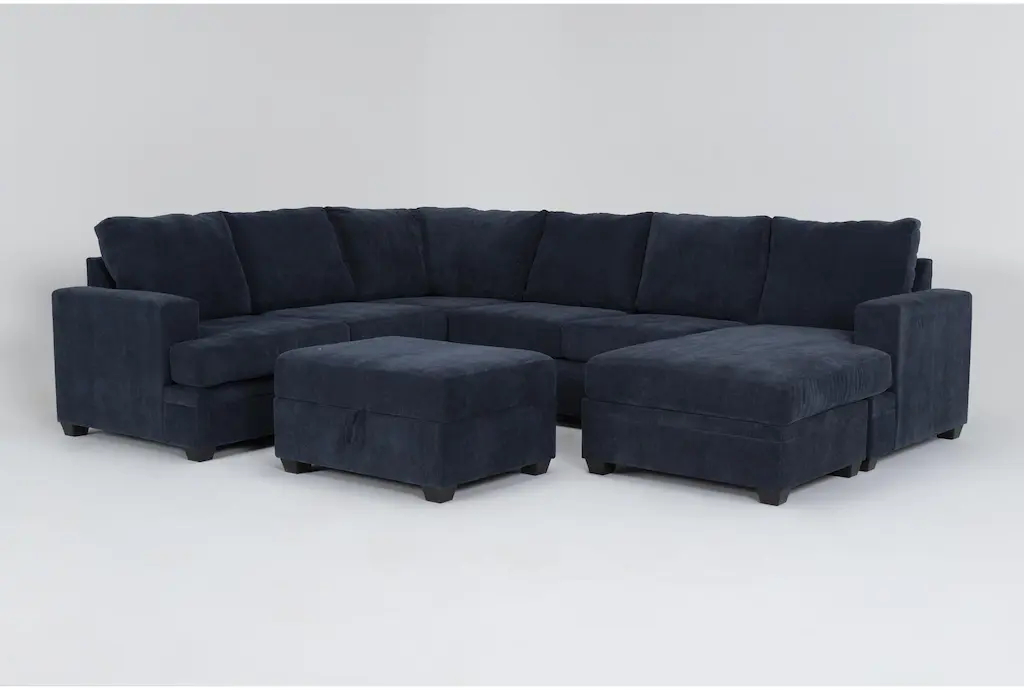 Bonaterra Midnight Navy Blue Fabric 127" 2 Piece U-Shaped Sectional With Left Arm Facing Queen Memory Foam Sleeper Sofa Bed Chaise & Right Arm Facing Corner Chaise
