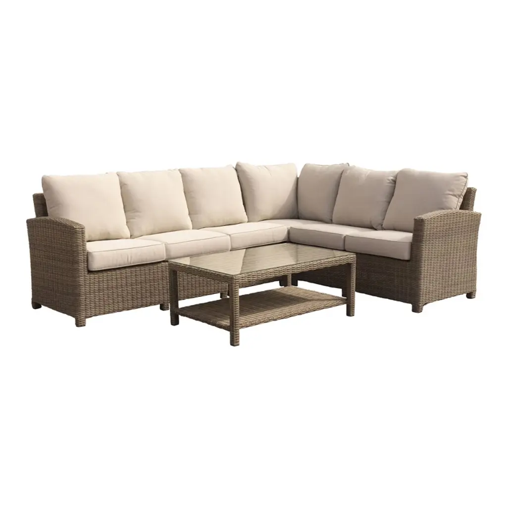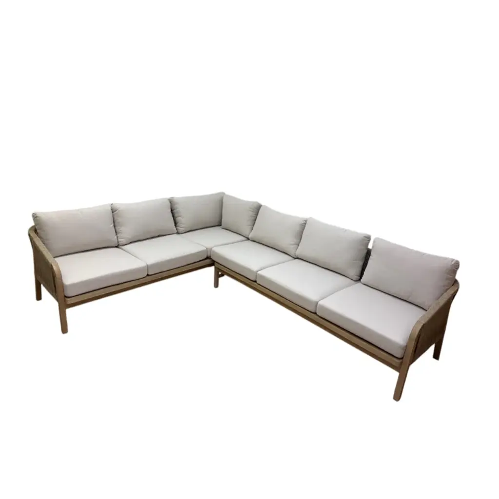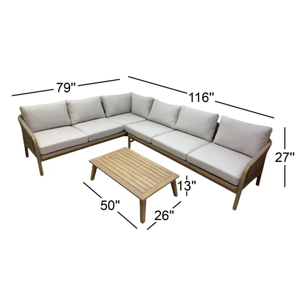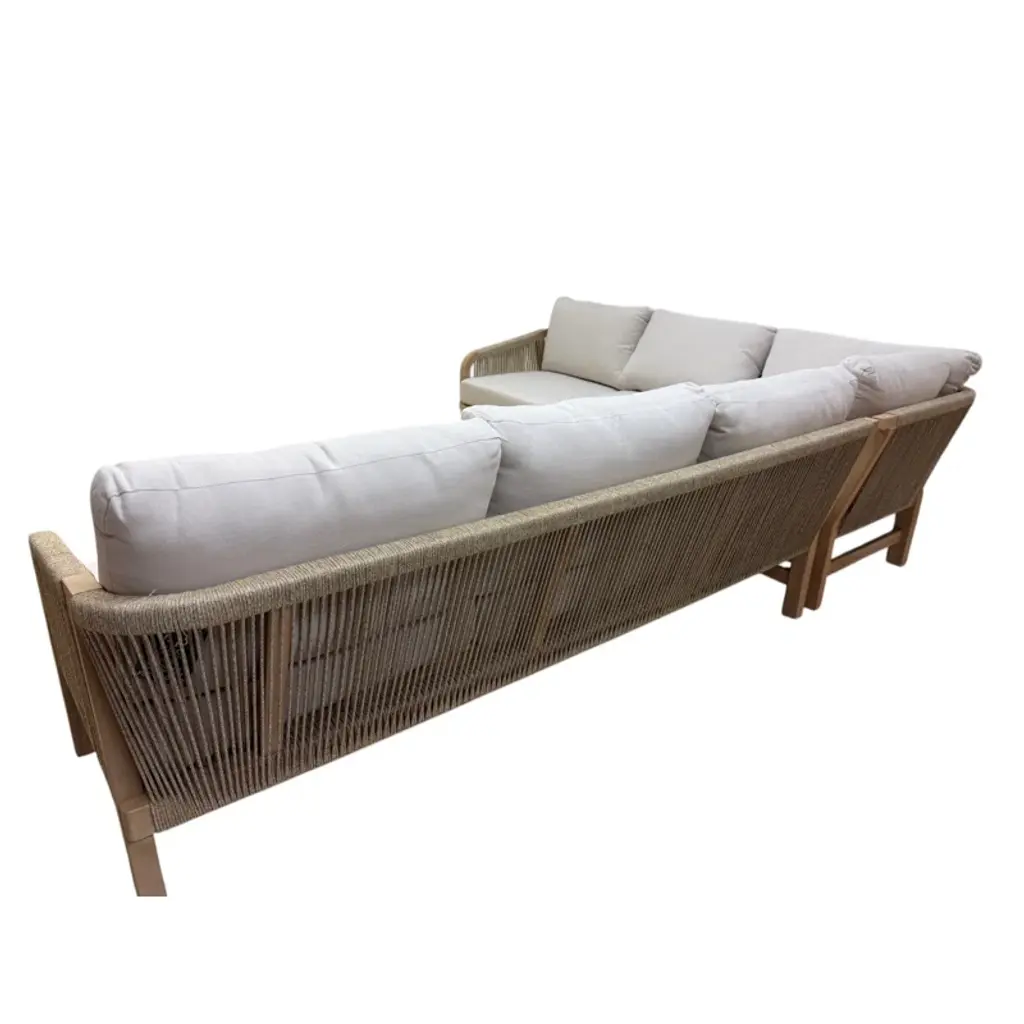 Unwind in style. Our 3-piece outdoor conversation set features a solid acacia wood frame and eye-catching rope details. With seating for five, this set includes a sectional, cushions, and a coffee table, making it perfect for gatherings or solo relaxation. The water-resistant and UV-resistant cushions are covered in a durable polyester blend, and the removable, machine-washable covers make cleanup a breeze. So, sit back, sip your favorite drink, and enjoy the outdoors.