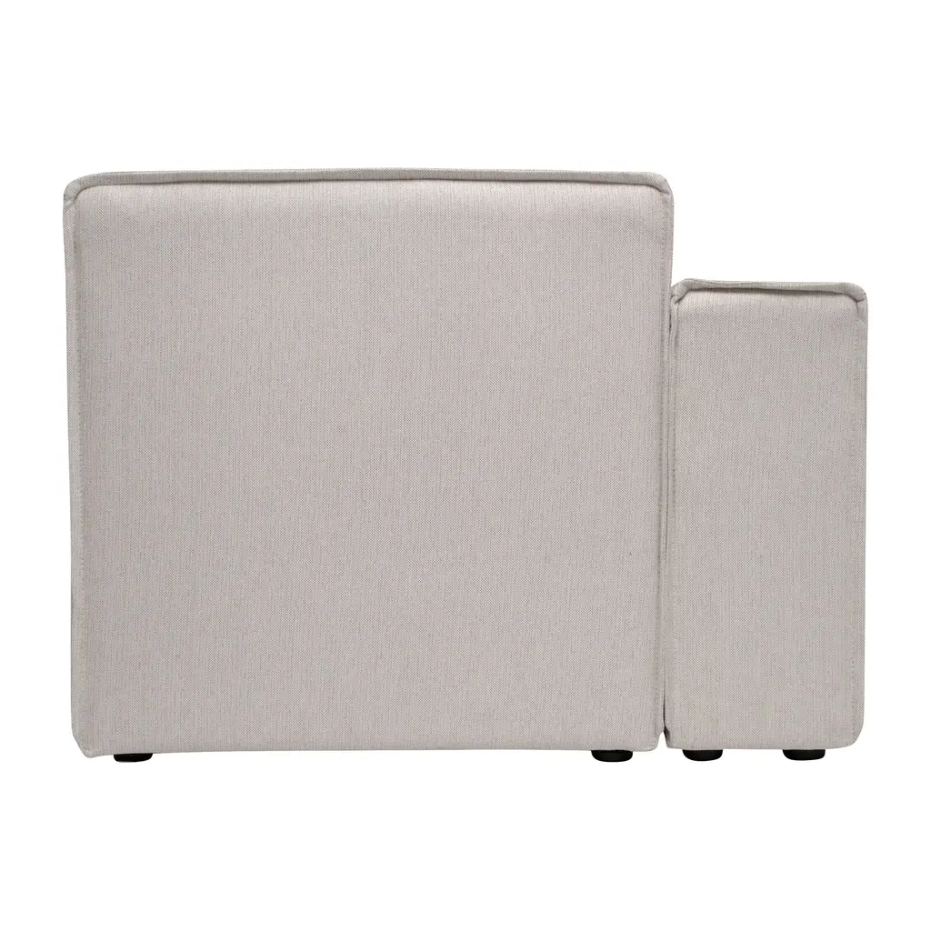 Versatility is a major plus in modern furniture design and this modular left side chair with armrest is the perfect marriage of form and functionality. This modular sofa component may be used alone or joined together with other pieces in the collection for a custom configuration. Security clips beneath each piece ensure a cohesive fit and uniform look. Boasting a pocket spring core with plush comfort foam cushions and premium fabric upholstery with piped edges, the modern look of this sectional sofa chair is ideal for almost any decor. Constructed with a solid wood frame, this seat holds up to 300 lbs. static weight. This component ships in more than one box so please ensure you have all pieces of your new seat before beginning assembly. Assembly takes less than 30 minutes, simply remove the feet from the armrest and backrest and install into the predrilled holes then insert each piece onto the seat. Vacuum or lightly brush to keep your new seating looking showroom new.
