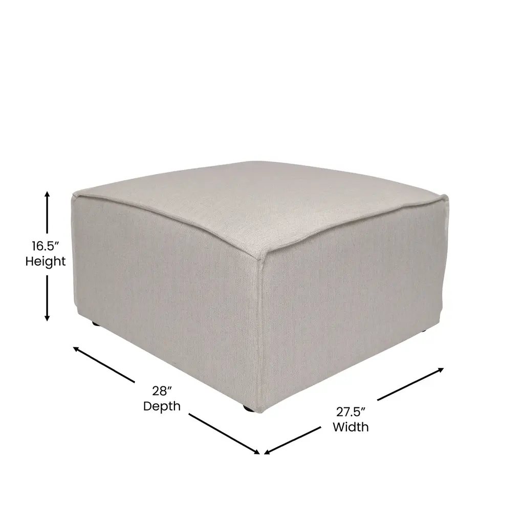 Versatility is a major plus in modern furniture design and this modular ottoman is the perfect marriage of form and functionality. This modular sofa component may be used alone or as a companion piece with other items in the collection for a custom configuration. Boasting a pocket spring core with plush comfort foam padding and premium fabric upholstery with piped edges, the modern look of this sectional sofa ottoman is ideal for almost any decor. Constructed with a solid wood frame, this seat holds up to 300 lbs. static weight. Assembly takes less than 10 minutes and simply vacuum or lightly brush to keep your new seating looking showroom new.