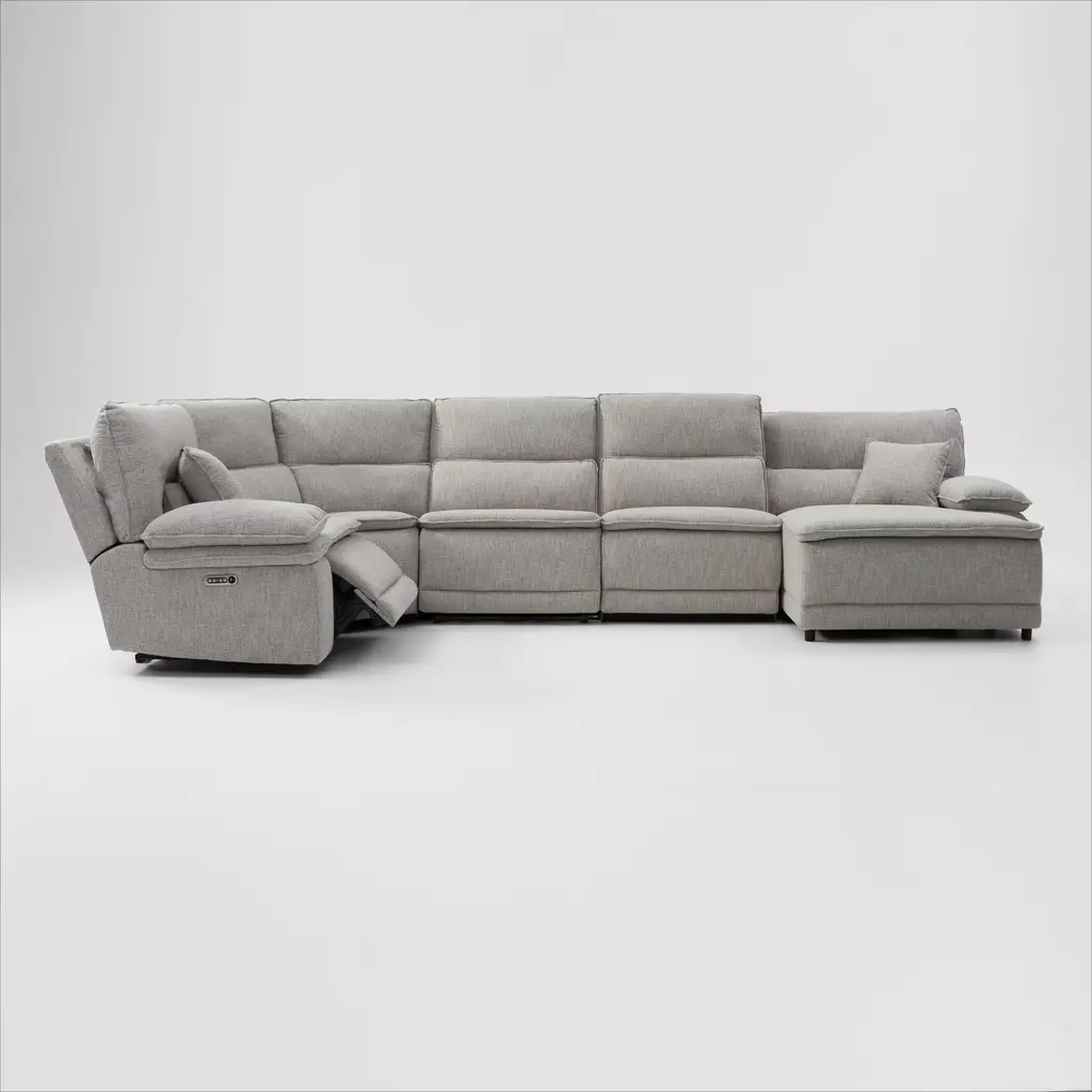 Modern style includes reclining that doesn’t look like reclining—like our Brookdale 5-Piece Dual-Power Reclining Sectional. Adjustable headrest and footrest, cozy deep seats and lots of cushions and pillows—it doesn’t get any comfier.