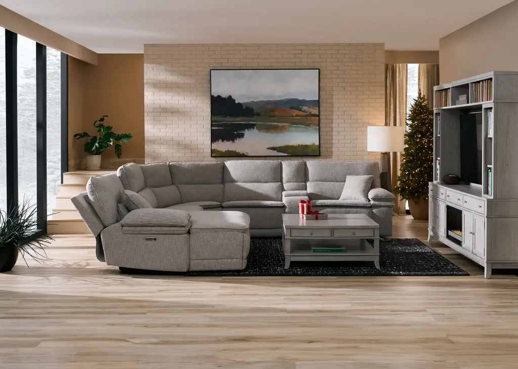 Modern style includes reclining that doesn’t look like reclining—like our Brookdale 6-Piece Dual-Power Reclining Sectional With Chaise. Adjustable headrest and footrest, cozy deep seats and lots of cushions and pillows—it doesn’t get any comfier.