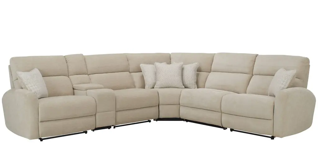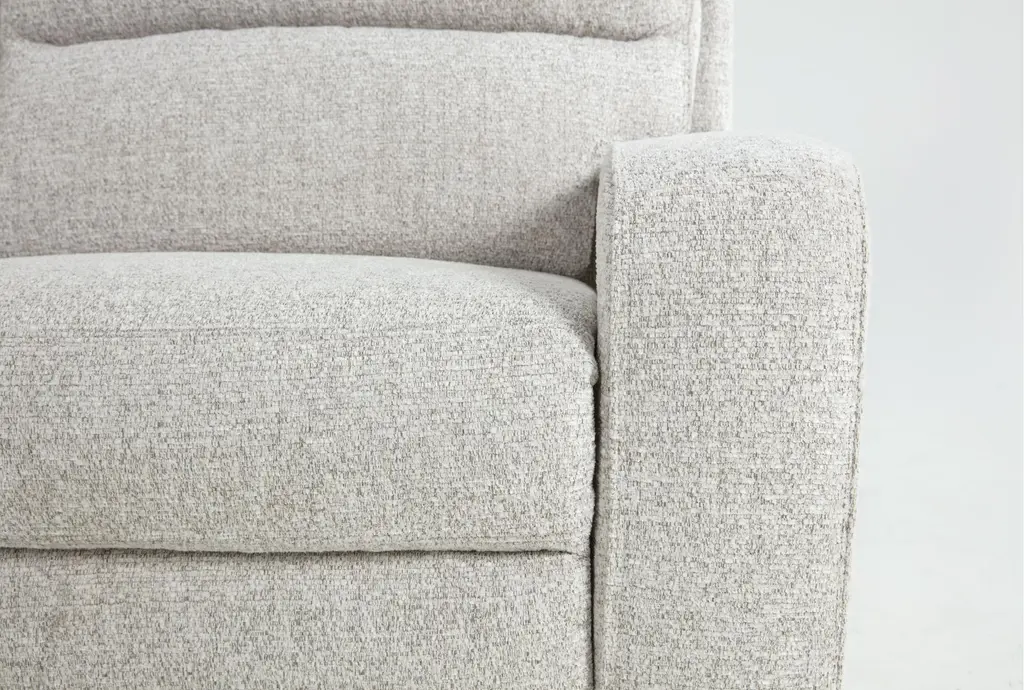Enhance your living room with the Brooks Grey 5 Piece Power Zero Gravity Modular Reclining Sectional. This casual and stylish sectional features adjustable headrests and a left-facing orientation, making it a perfect fit for your home. Upholstered in 100% polyester Haven Newsprint fabric, it combines comfort and durability.